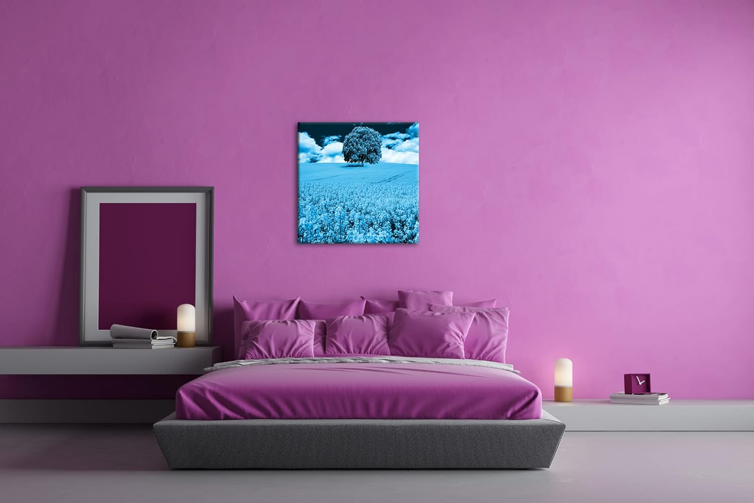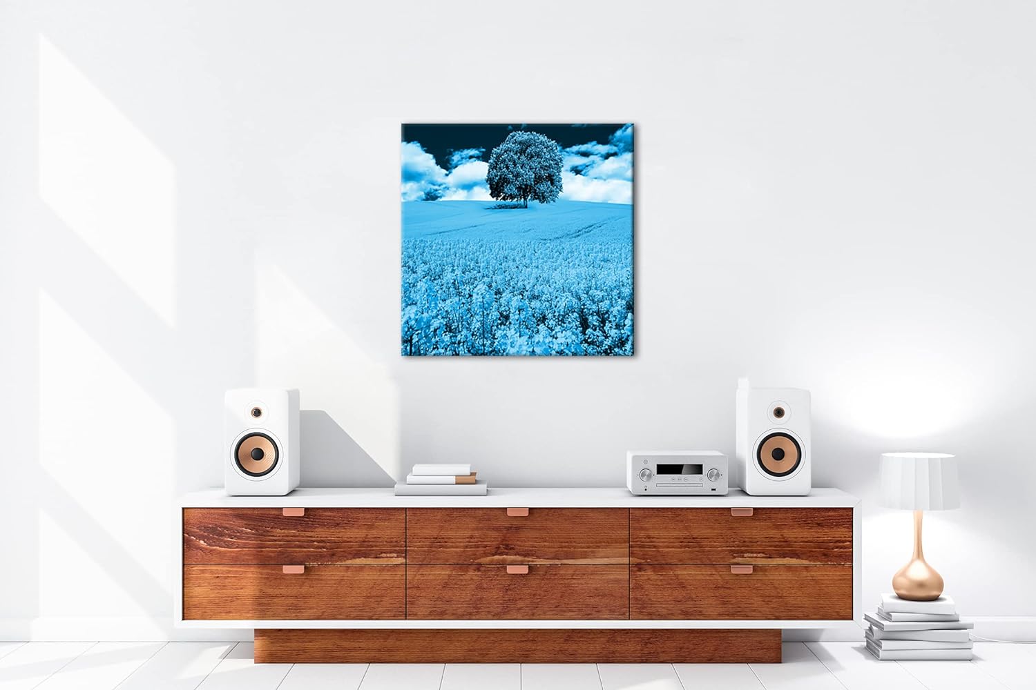 deyoli einzelner Baum im Rapsfeld Format: 70x70 Effekt: Monocrome Blau als Leinwandbild, Motiv ferti
