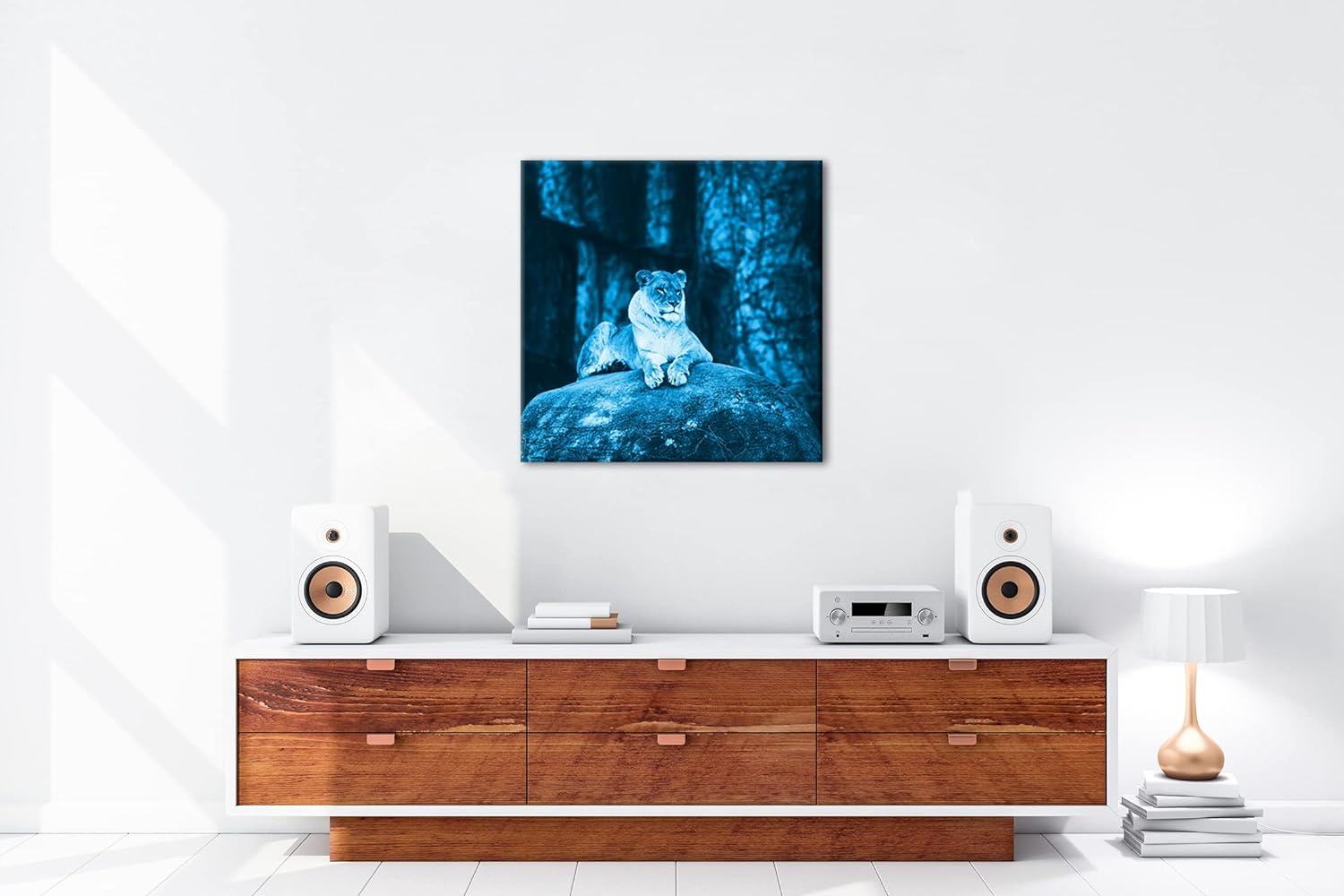 deyoli erhabene stolze Löwin Format: 60x60 Effekt: Monocrome Blau als Leinwand, Motiv fertig gerahmt