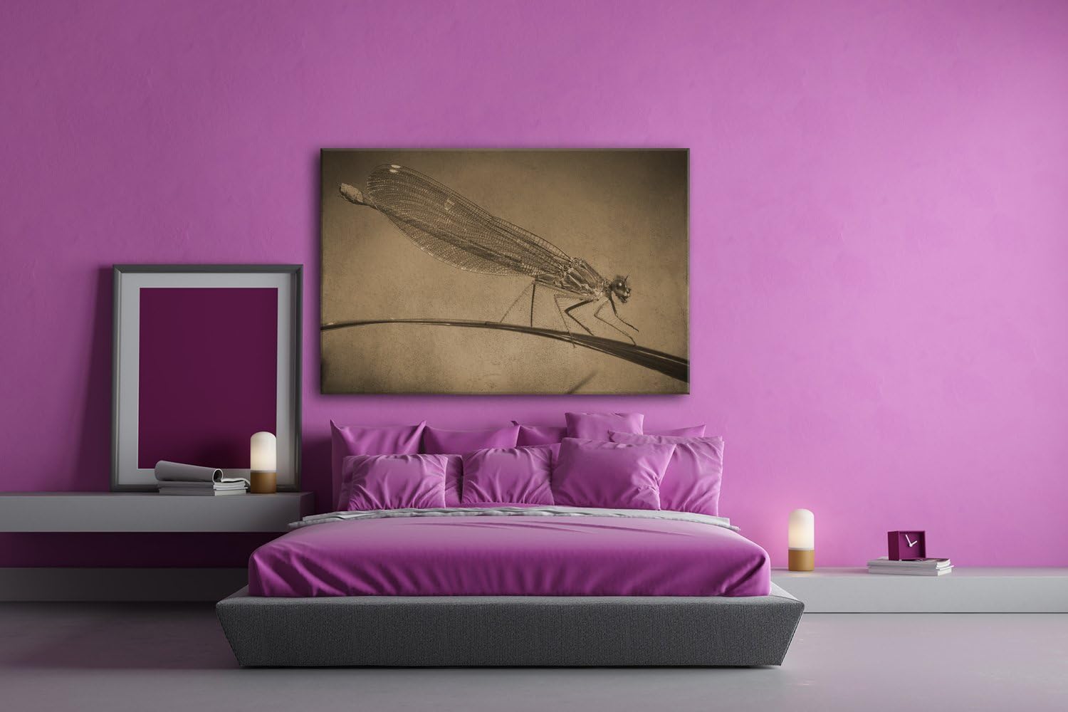 deyoli exotische Libelle Format: 80x60 Effekt: Sepia als Leinwand, Motiv fertig gerahmt auf Echtholz