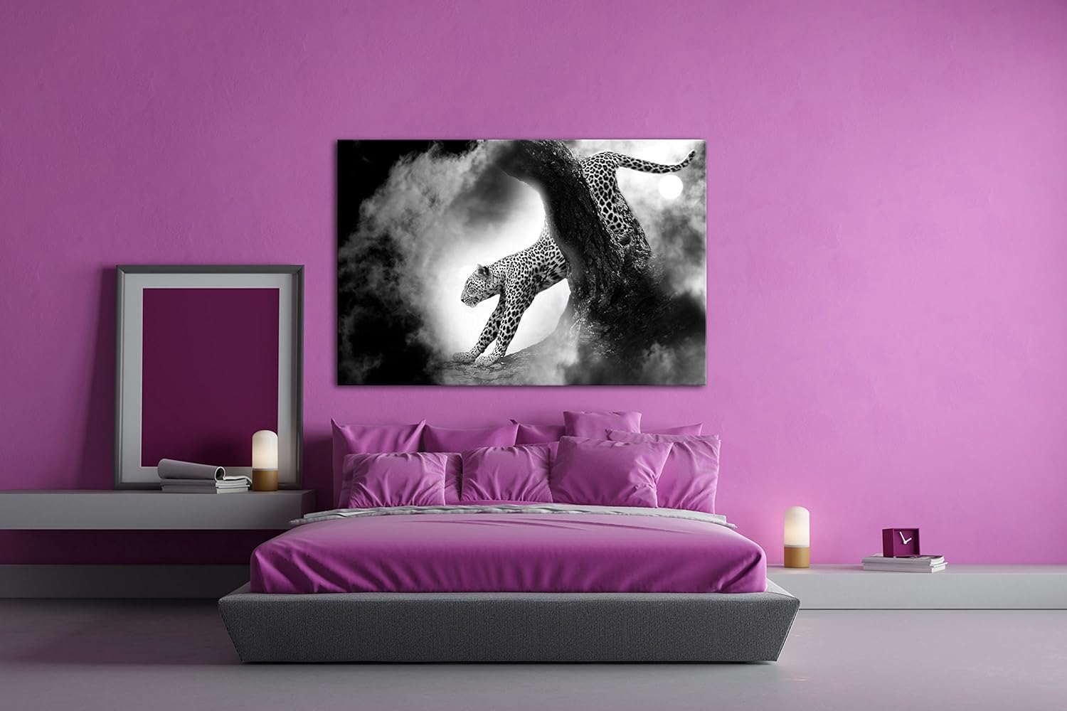 deyoli exotischer Gepard im Mondschein im Format: 80x60 als Leinwandbild, Motiv fertig gerahmt auf E