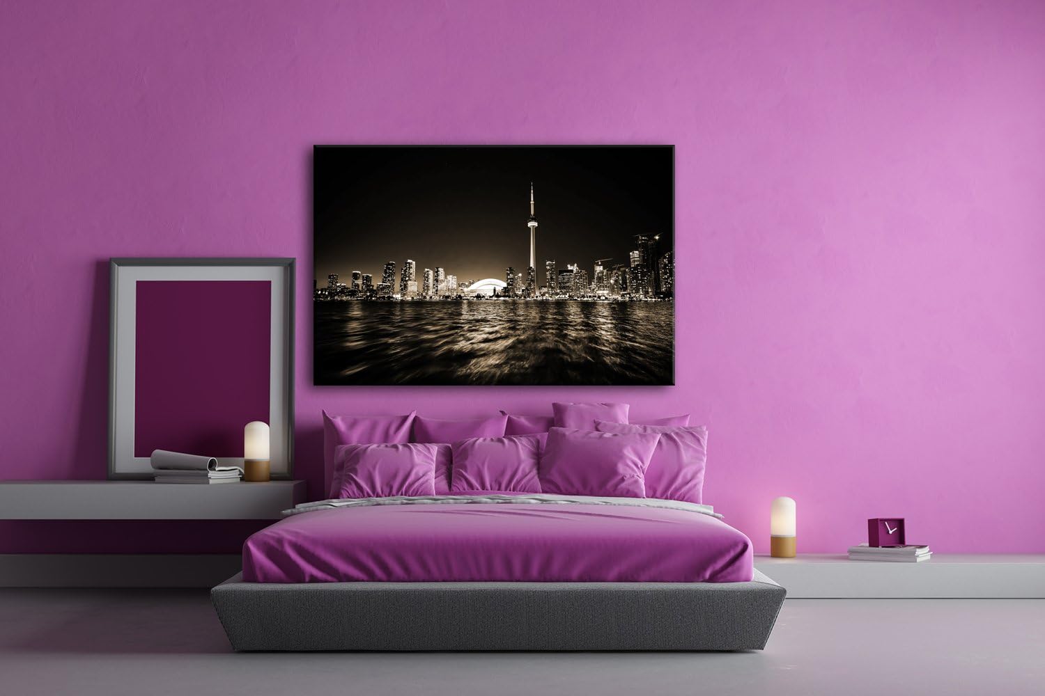 deyoli farbenfrohe Küste von Toronto Format: 80x60 Effekt: Sepia als Leinwand, Motiv fertig gerahmt
