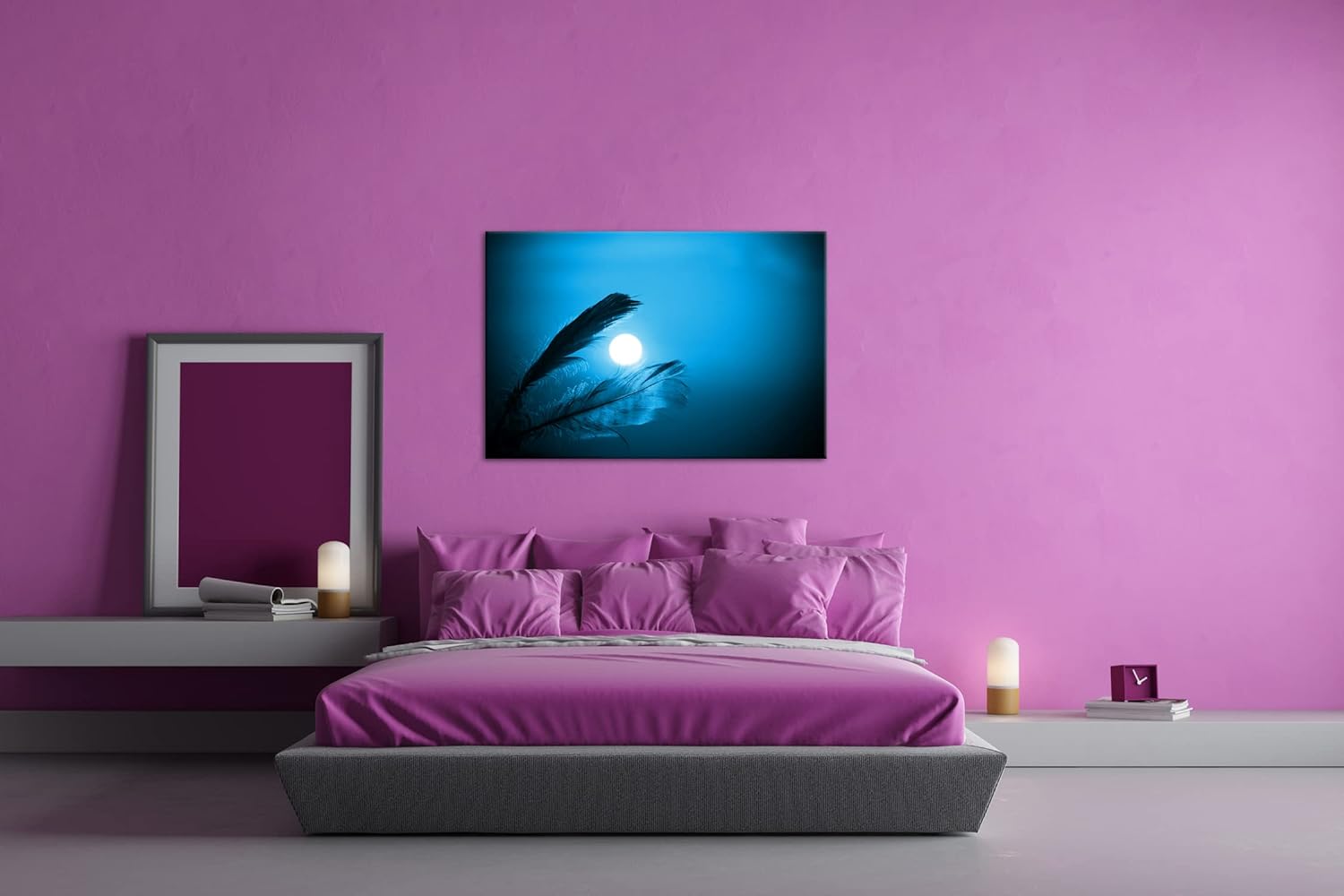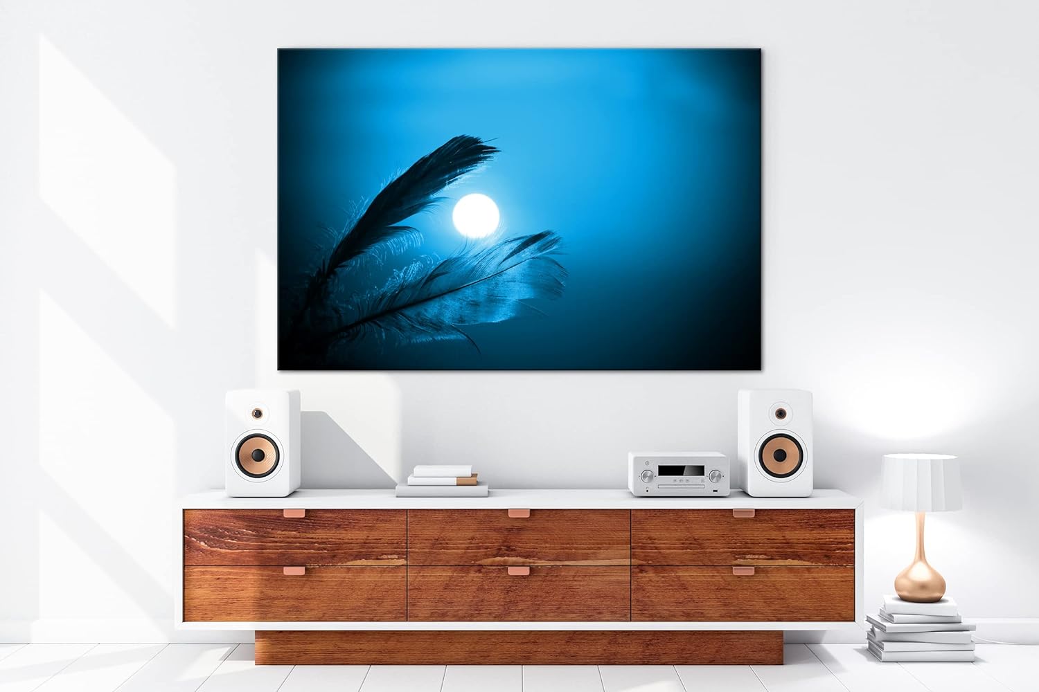 deyoli Federn im Sonnenuntergang Format: 80x60 Effekt: Monocrome Blau als Leinwandbild, Motiv fertig