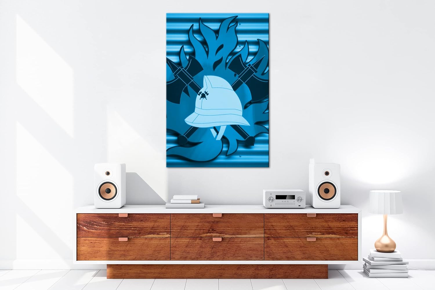 deyoli Feuerwehrmotiv Format: 80x60 Effekt: Monocrome Blau als Leinwandbild, Motiv fertig gerahmt au