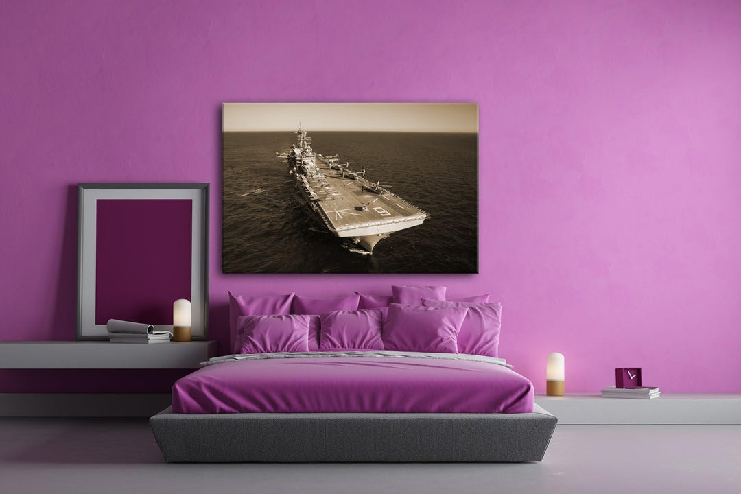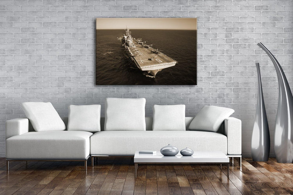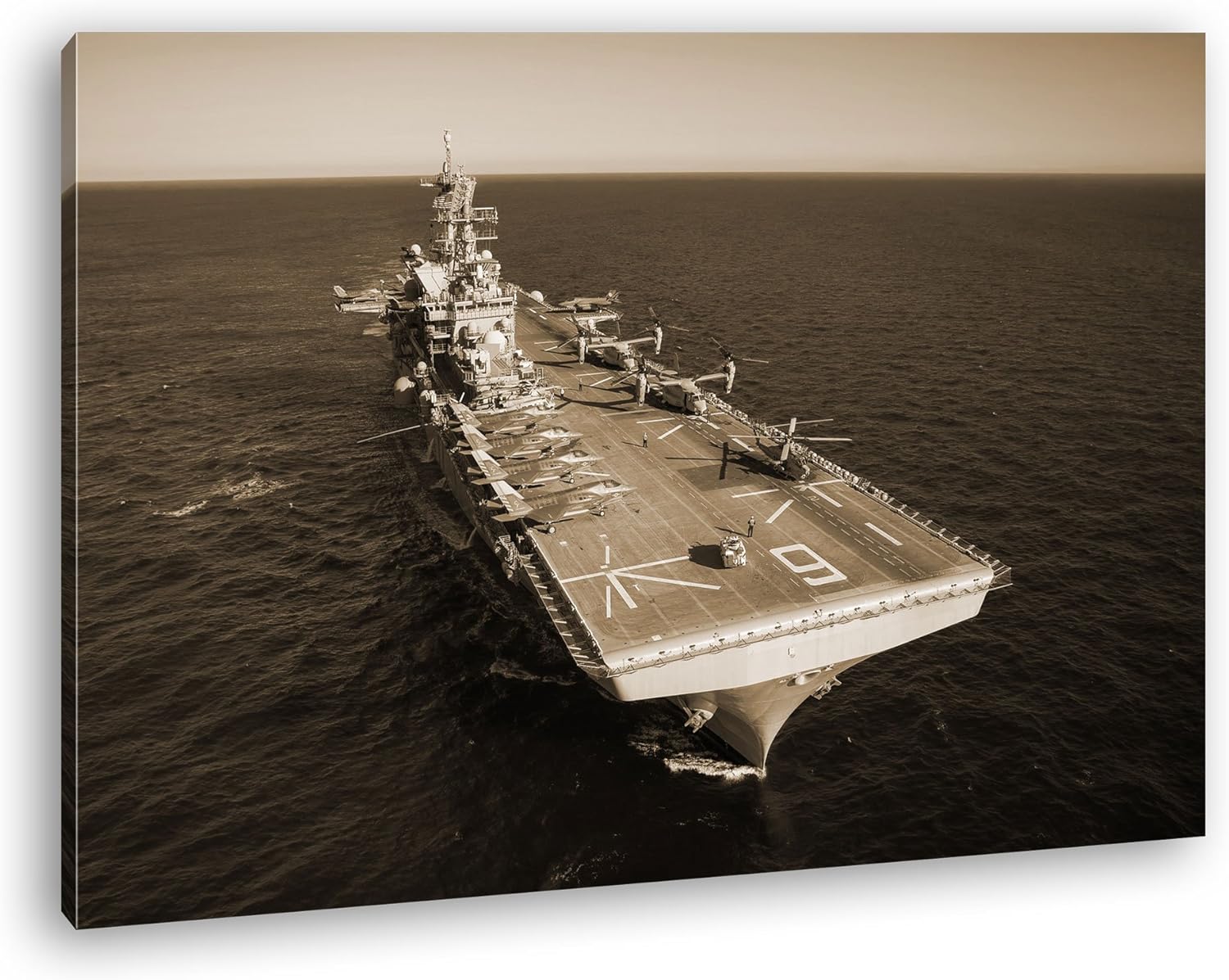 deyoli Flugzeugträger Format: 80x60 Effekt: Sepia als Leinwand, Motiv fertig gerahmt auf Echtholzrah