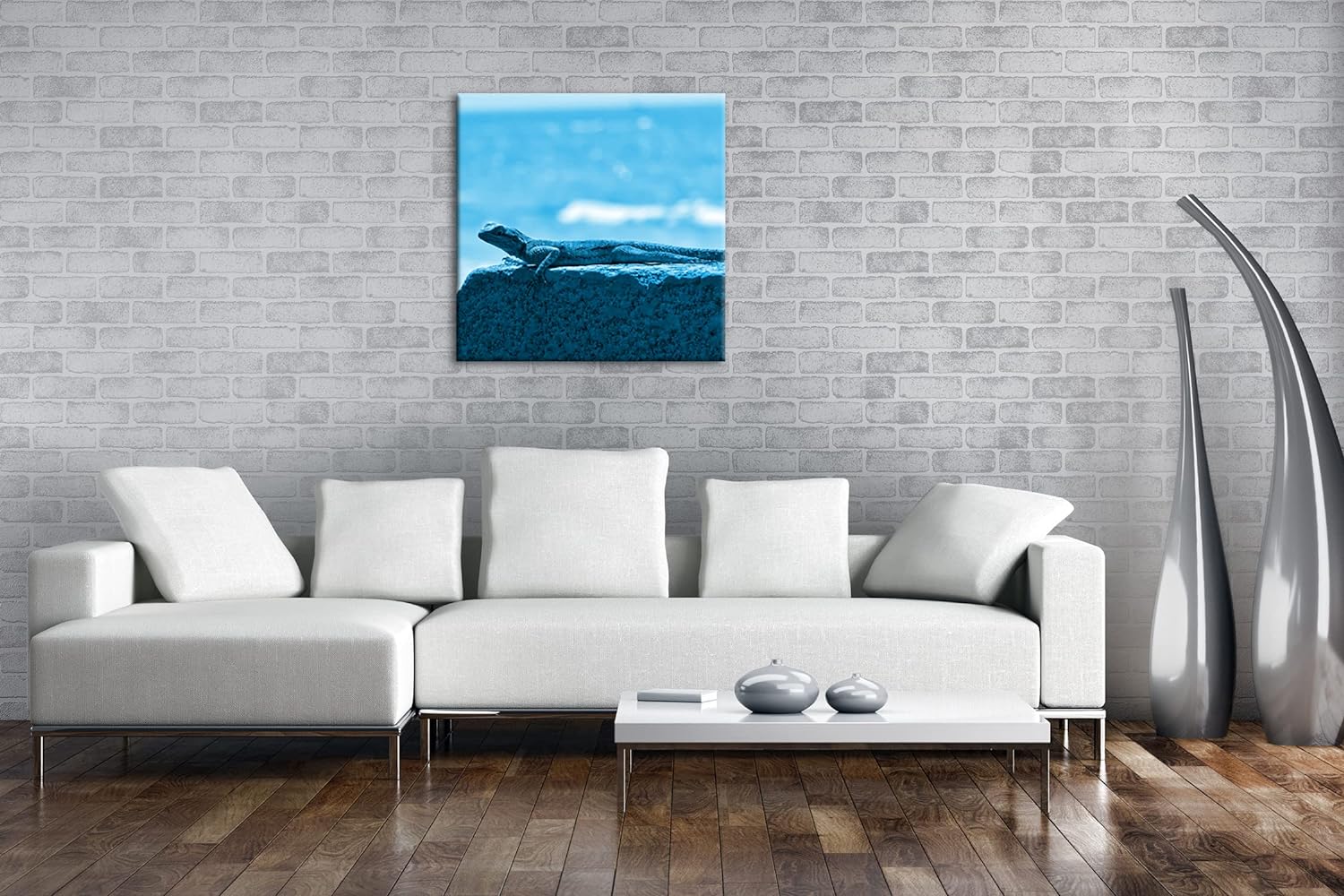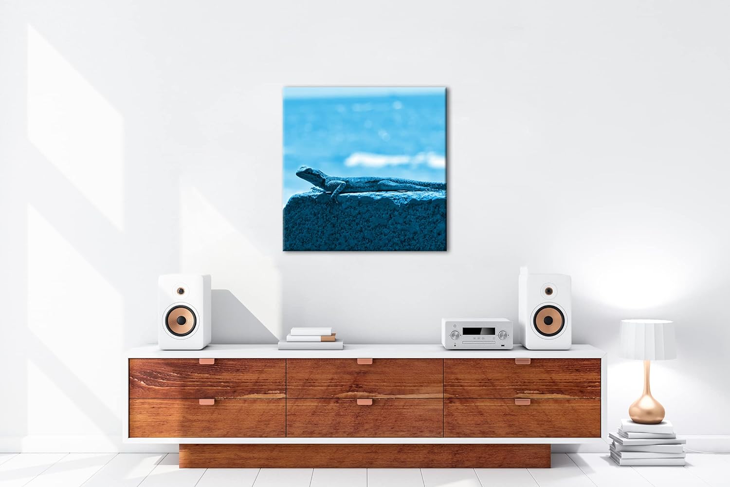 deyoli Gecko sonnt Sich Format: 70x70 Effekt: Monocrome Blau als Leinwandbild, Motiv fertig gerahmt