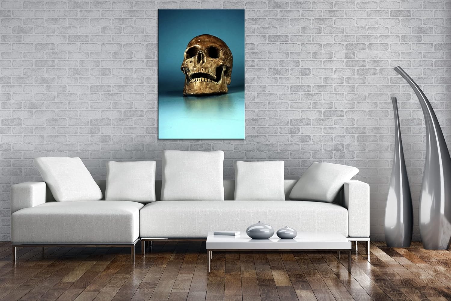 deyoli goldener Schädel im Format: 80x60 als Leinwandbild, Motiv fertig gerahmt auf Echtholzrahmen,