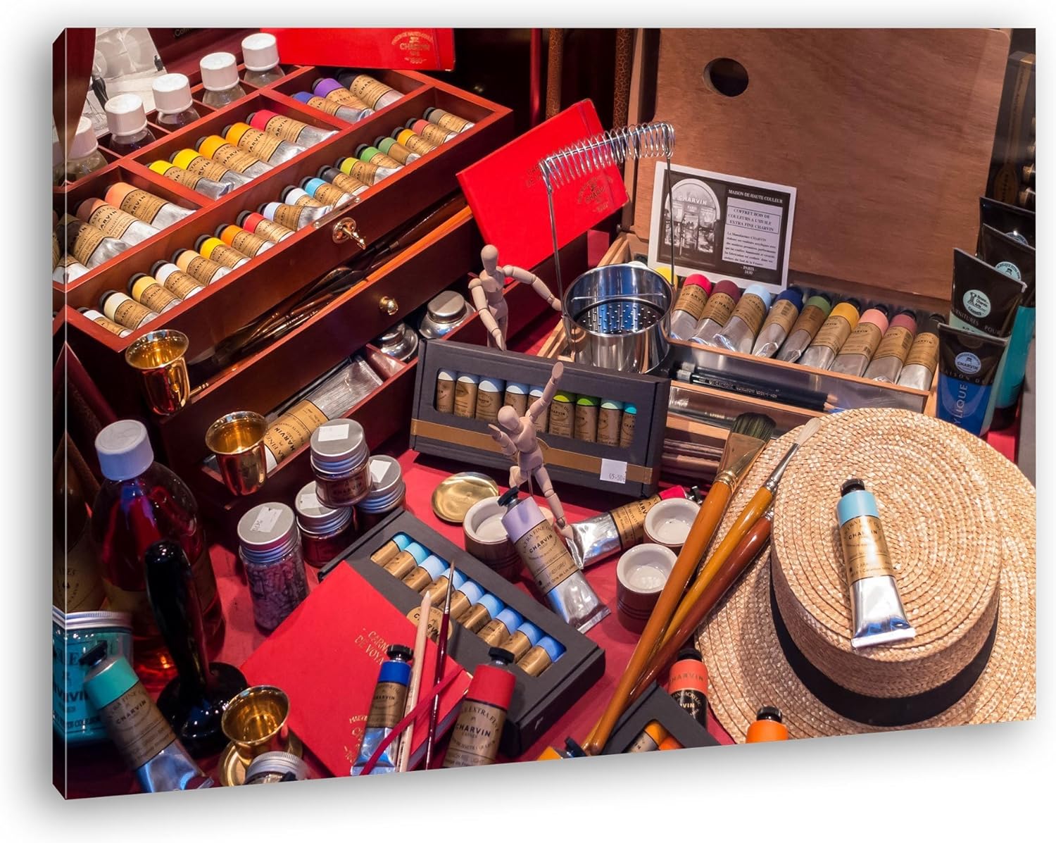 deyoli grosser Tisch mit Nähzeug Format: 80x60 als Leinwandbild, Motiv fertig gerahmt auf Echtholzra