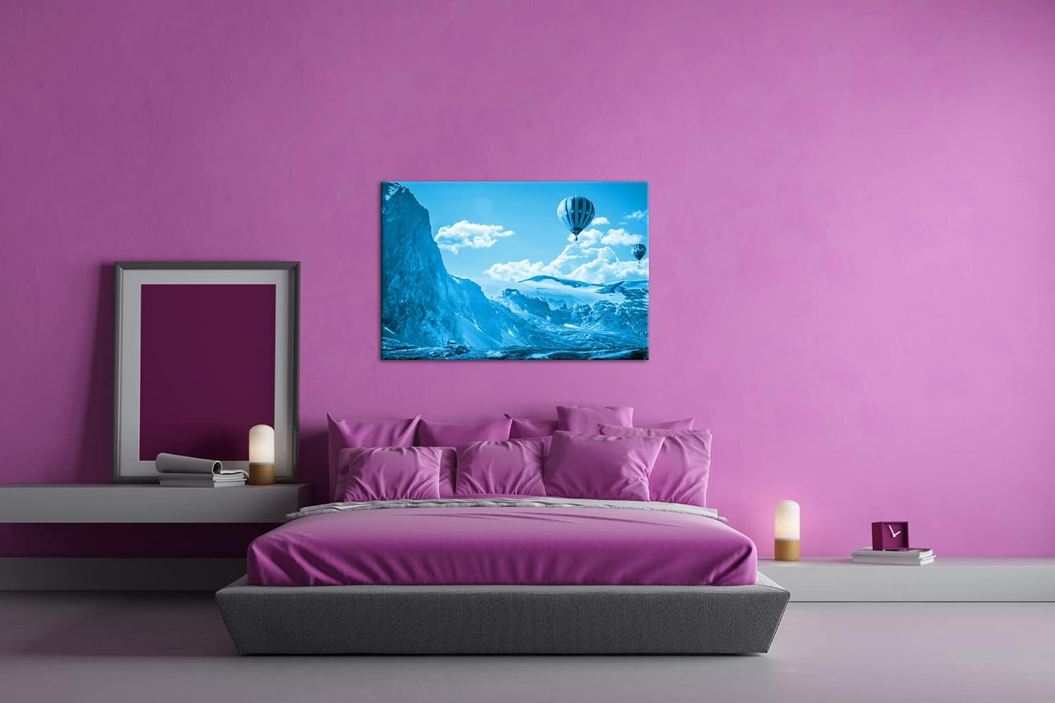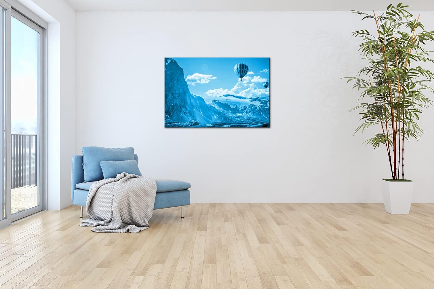 deyoli Heissluftballons im malerischen Gebirge Format 80x60 Effekt: Monocrome Blau als Leinwandbild,