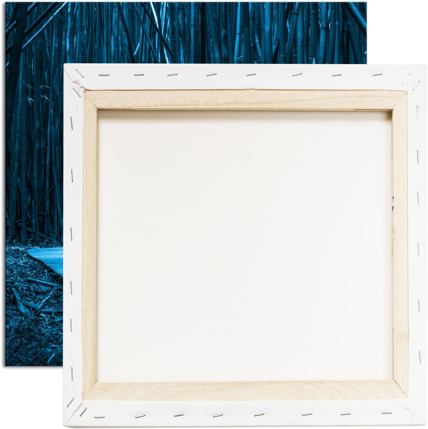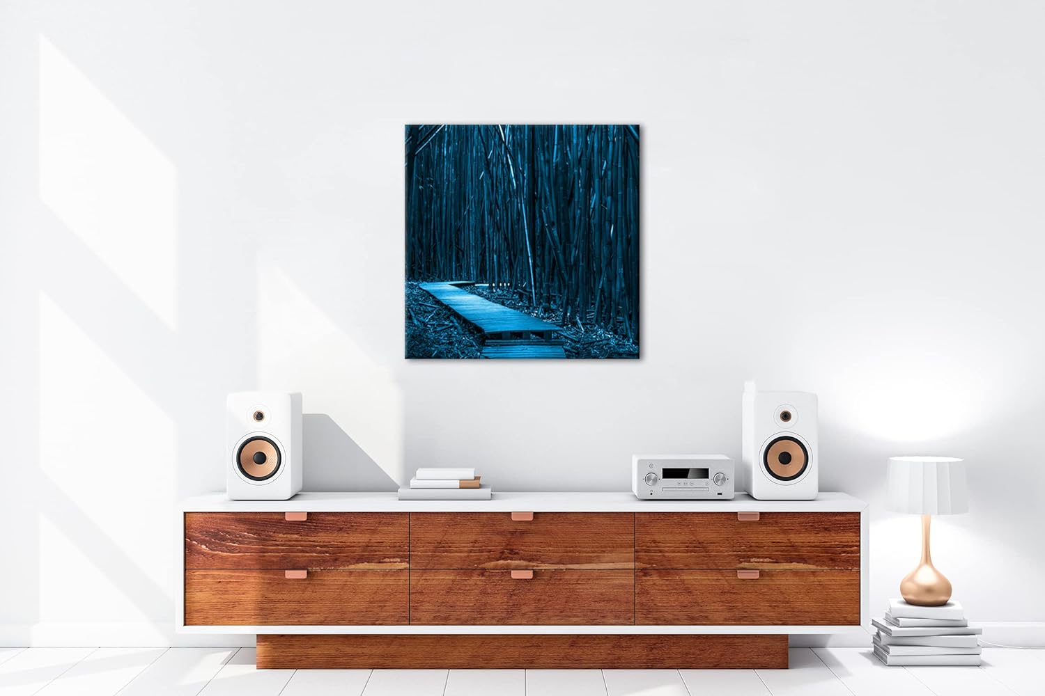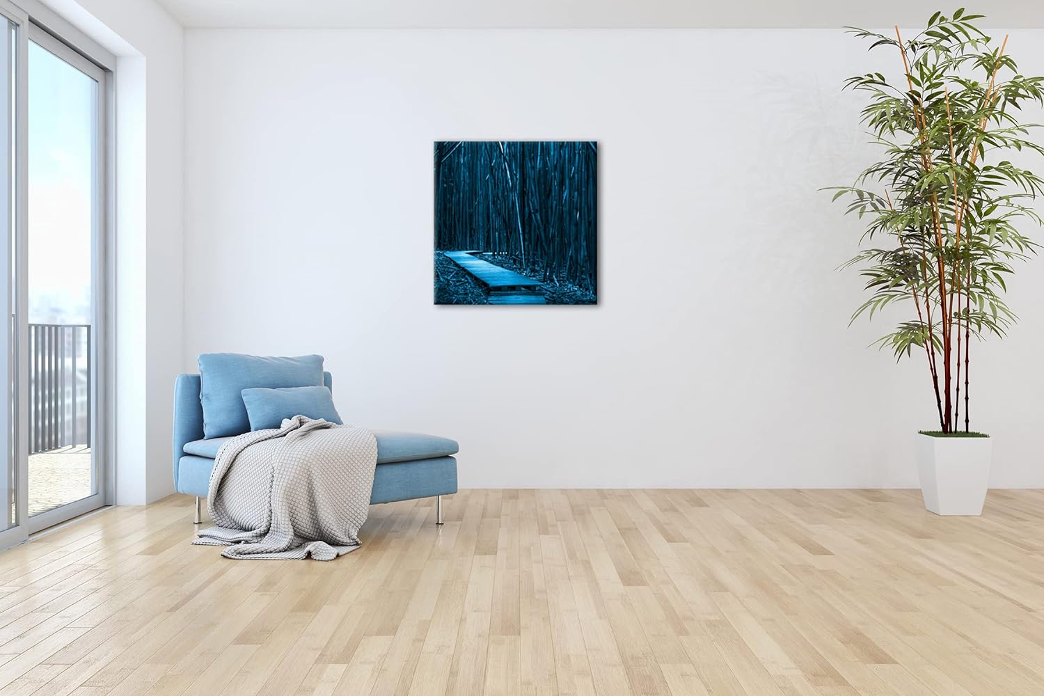 deyoli hölzerner Weg durch einen Bambuswald Format: 70x70 Effekt: Monocrome Blau als Leinwand, Motiv
