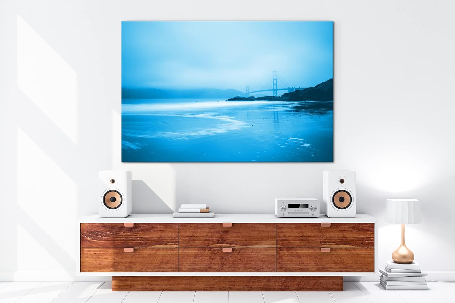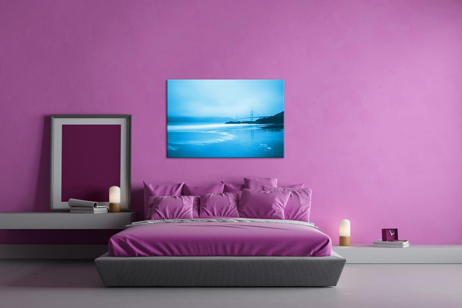 deyoli Hängebrücke im dichten Nebel Format: 80x60 Effekt: Monocrome Blau als Leinwandbild, Motiv fer
