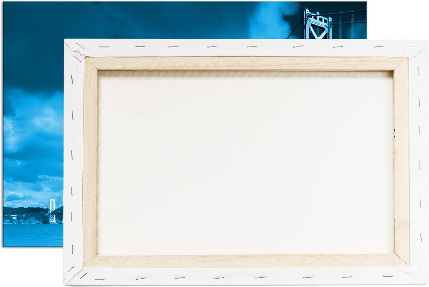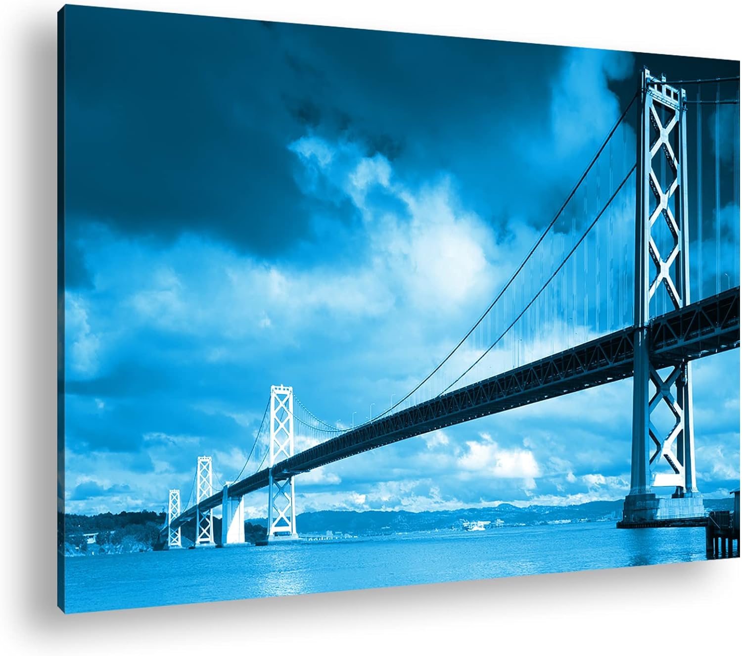 deyoli Hängebrücke im Kalifornien Format 80x60 Effekt: Monocrome Blau als Leinwandbild, Motiv fertig