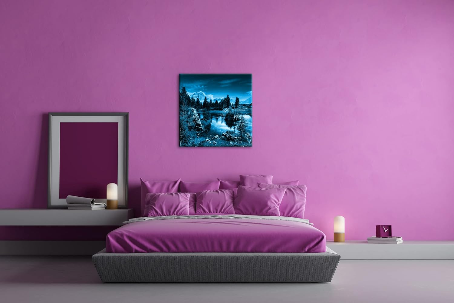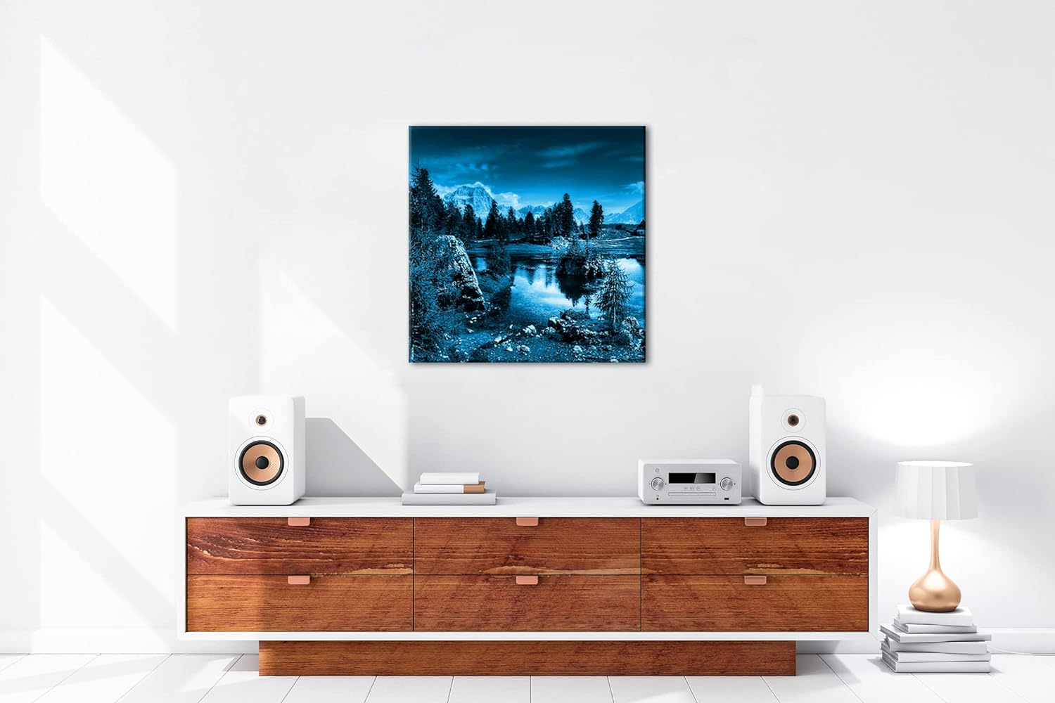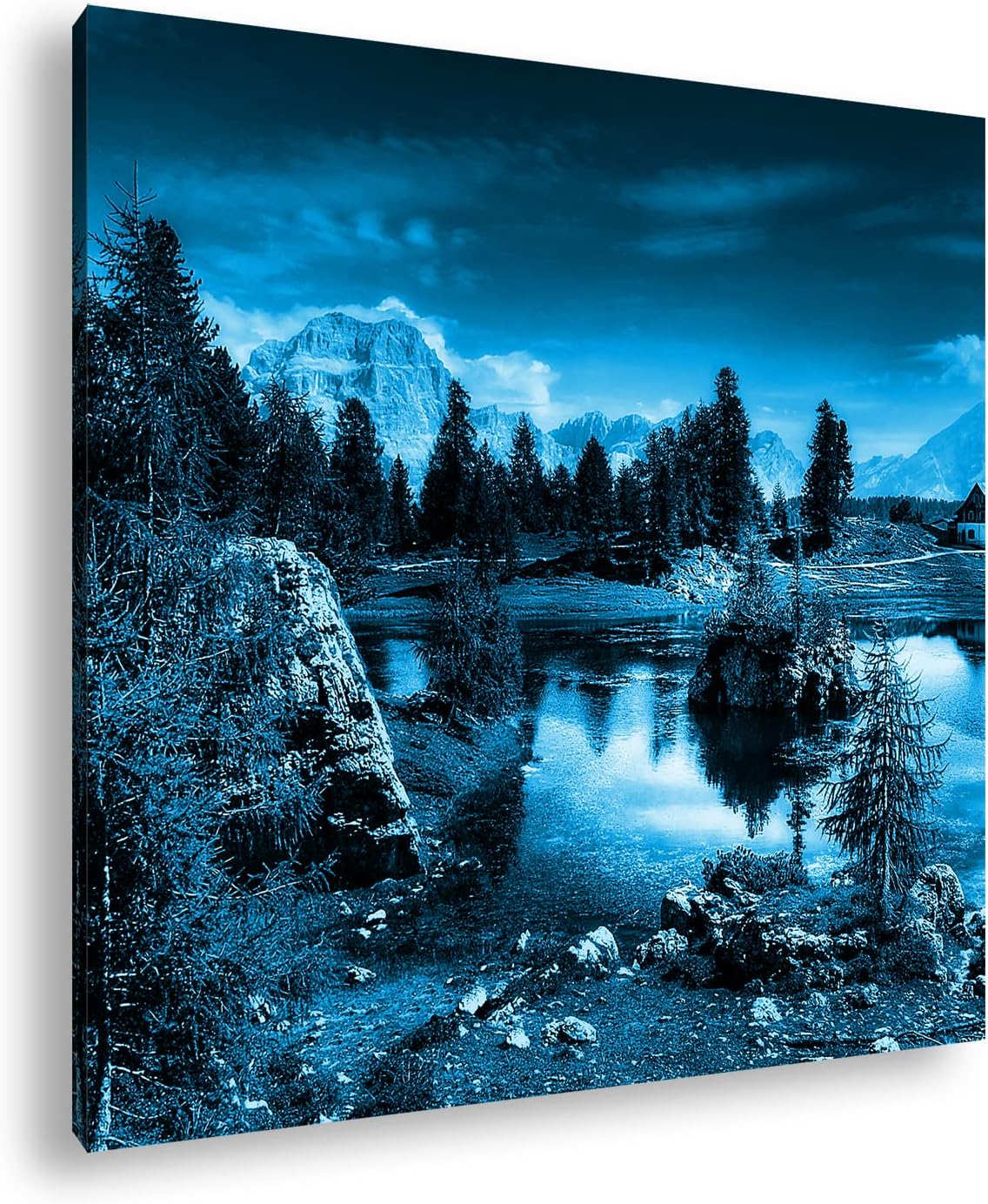 deyoli Holzhütte am klarem See Format: 60x60 Effekt: Monocrome Blau als Leinwandbild, Motiv fertig g