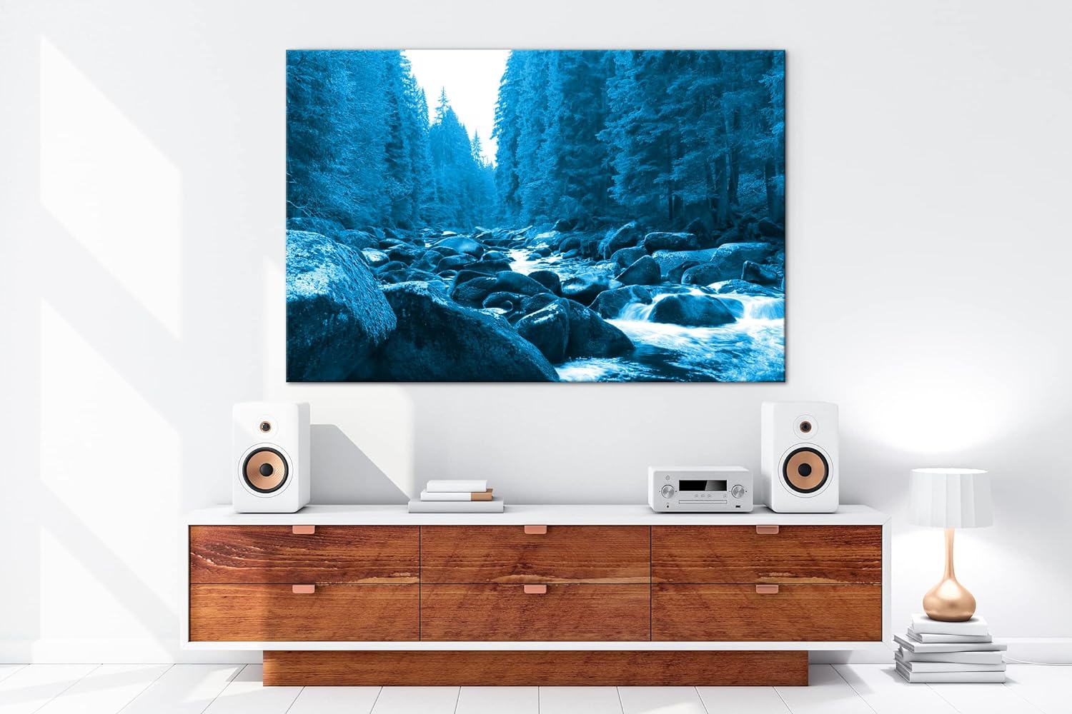 deyoli idyllischer Fluss im Wald Format 80x60 Effekt: Monocrome Blau als Leinwandbild, Motiv fertig