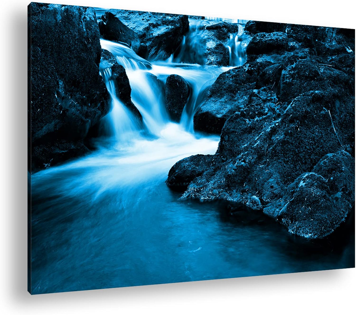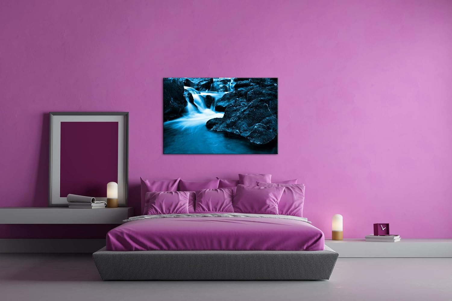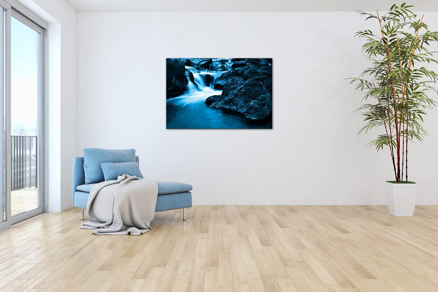 deyoli idyllischer Wasserfall in Irland Format 80x60 Effekt: Monocrome Blau als Leinwandbild, Motiv