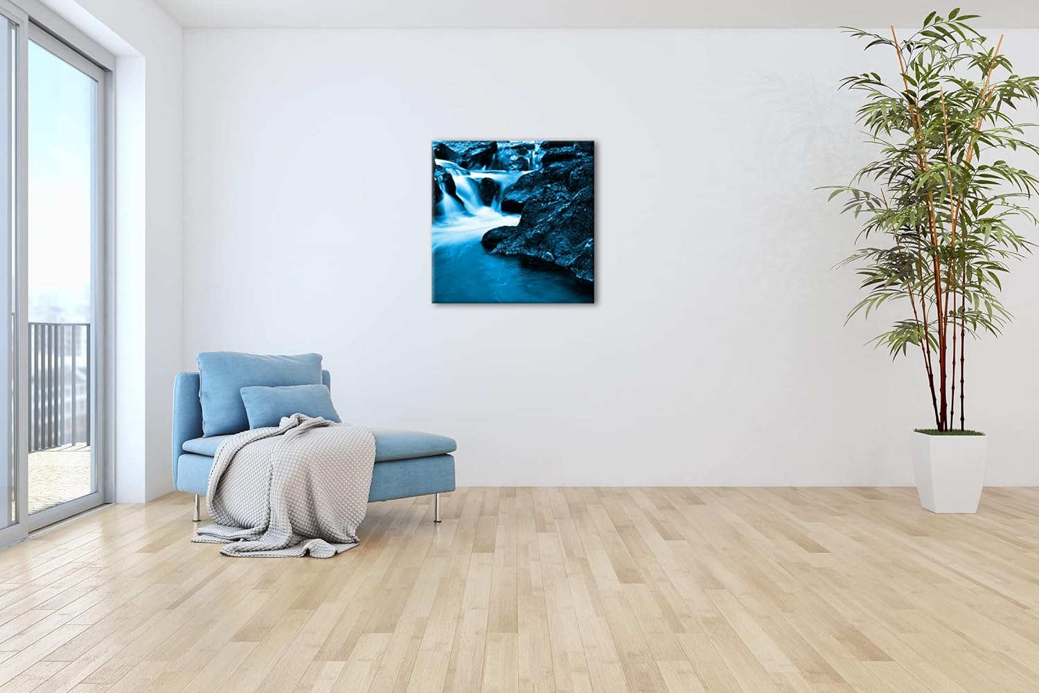 deyoli idyllischer Wasserfall in Irland Format: 70x70 Effekt: Monocrome Blau als Leinwandbild, Motiv