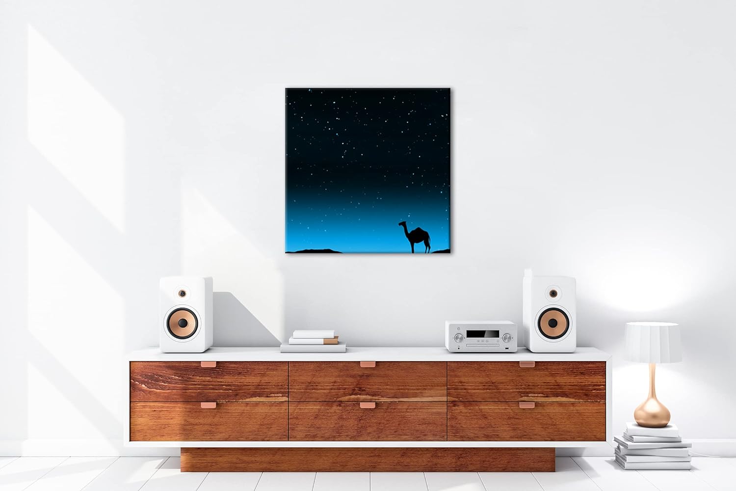 deyoli Illustration Kamel bei Abenddämmerung Format: 60x60 Effekt: Monocrome Blau als Leinwandbild,