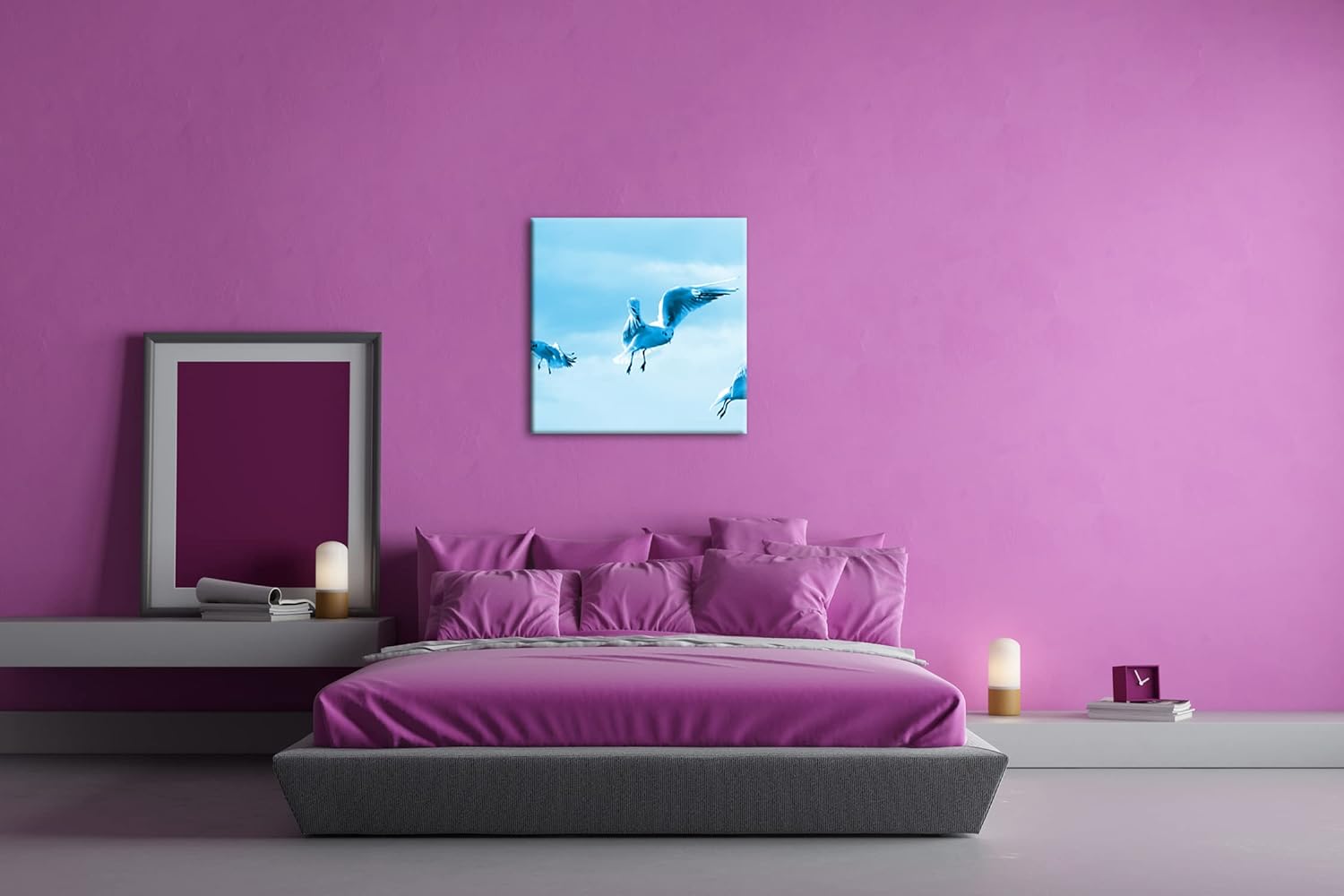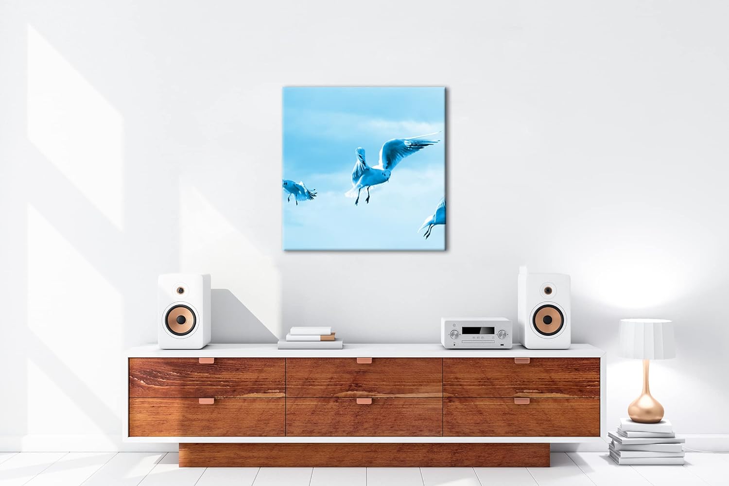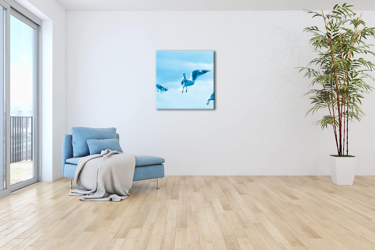 deyoli in Freiheit Fliegende Möwen Format: 70x70 Effekt: Monocrome Blau als Leinwandbild, Motiv fert