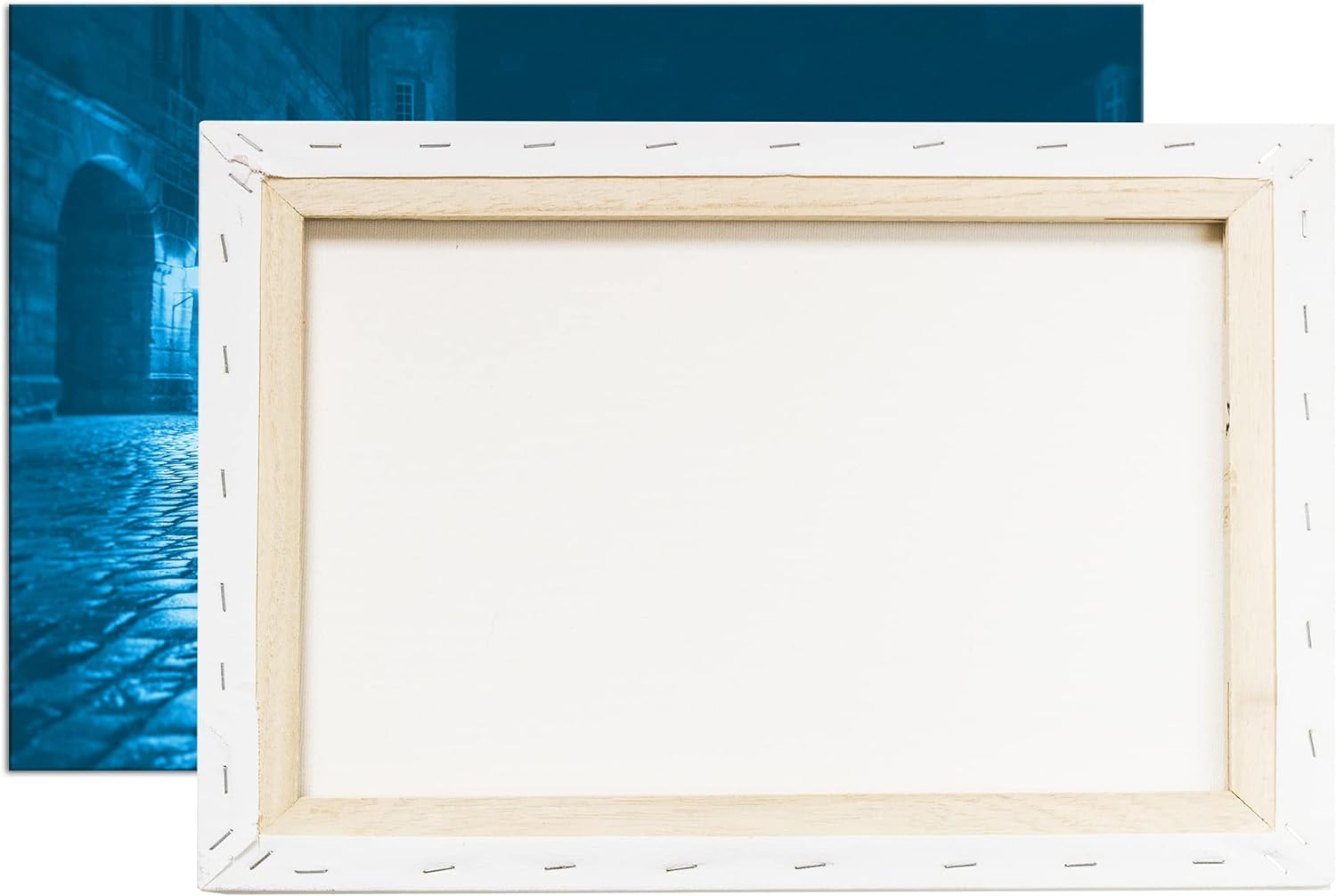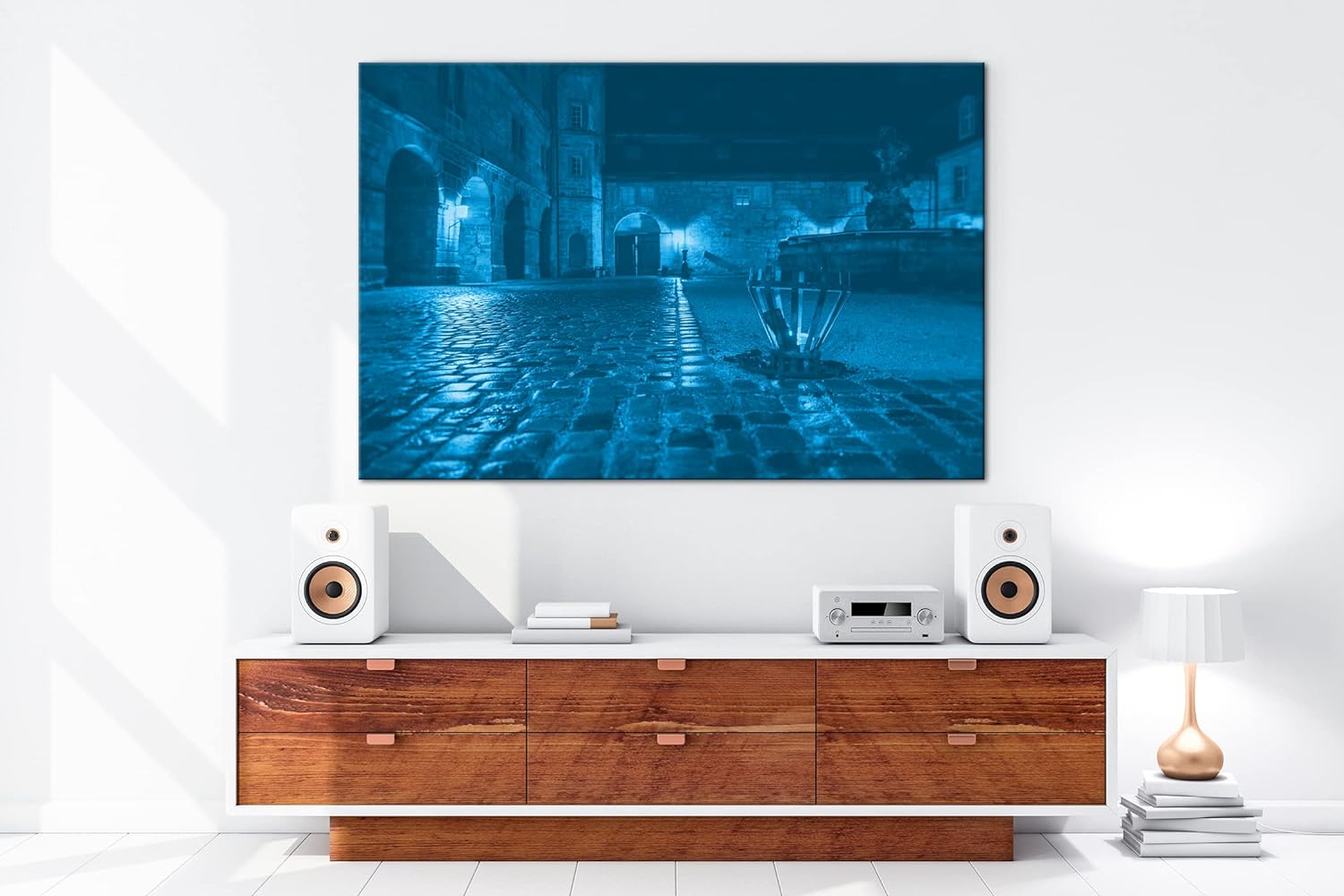 deyoli Innenhof einer Burg Format 80x60 Effekt: Monocrome Blau als Leinwandbild, Motiv fertig gerahm