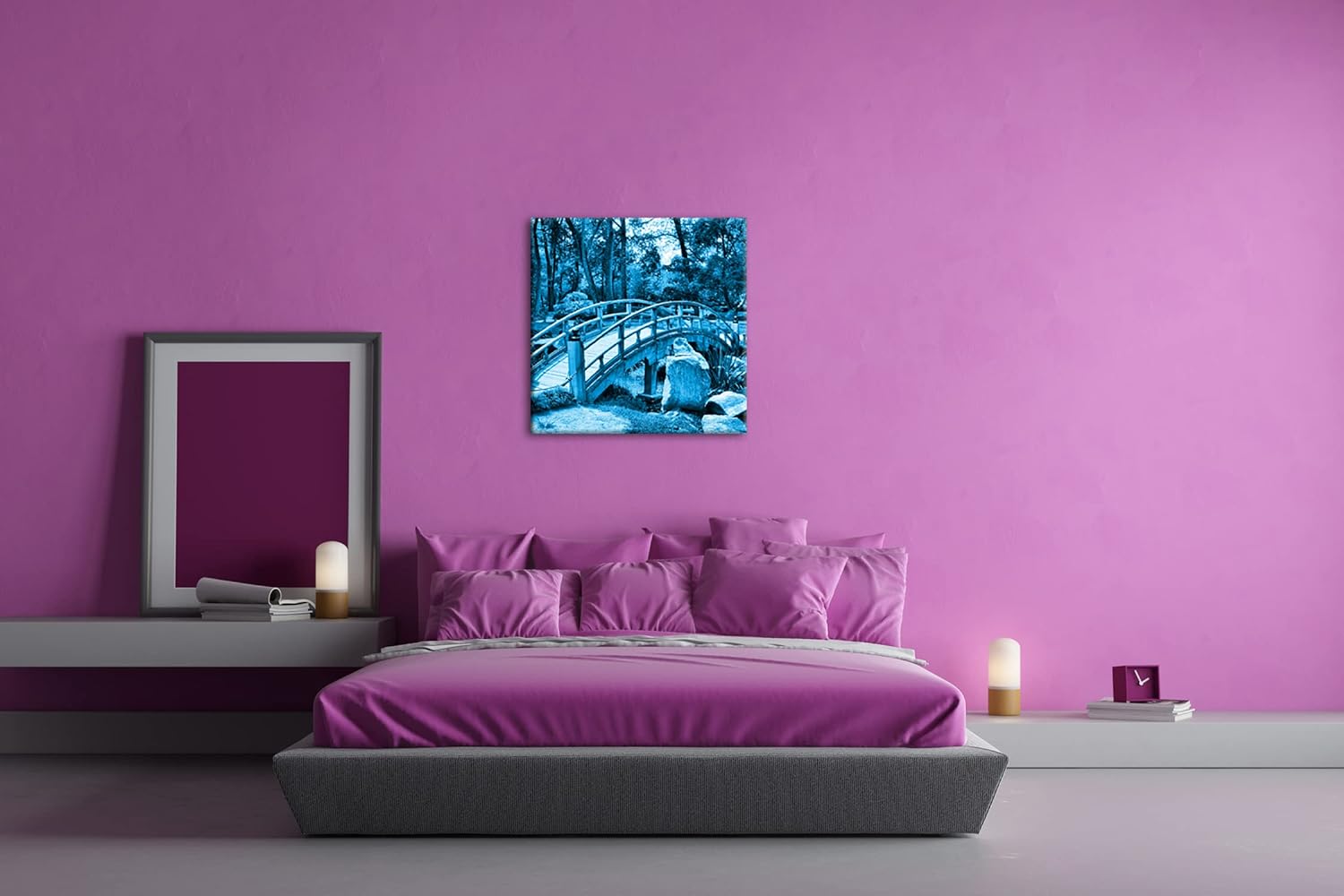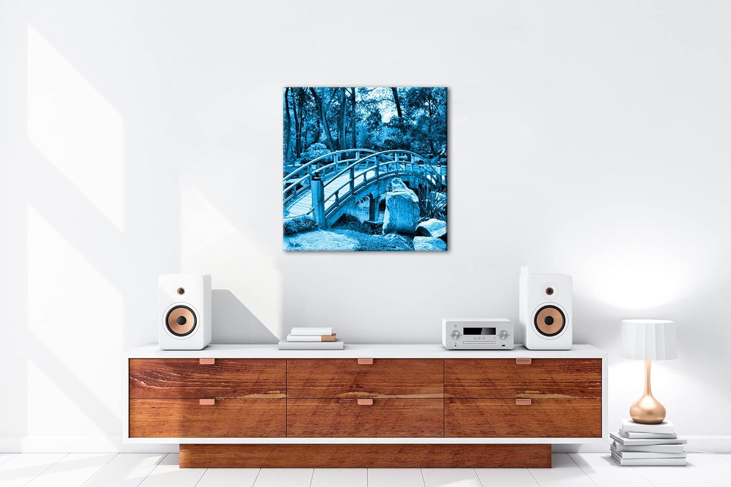deyoli Japanischer Garten Format: 70x70 Effekt: Monocrome Blau als Leinwandbild, Motiv fertig gerahm