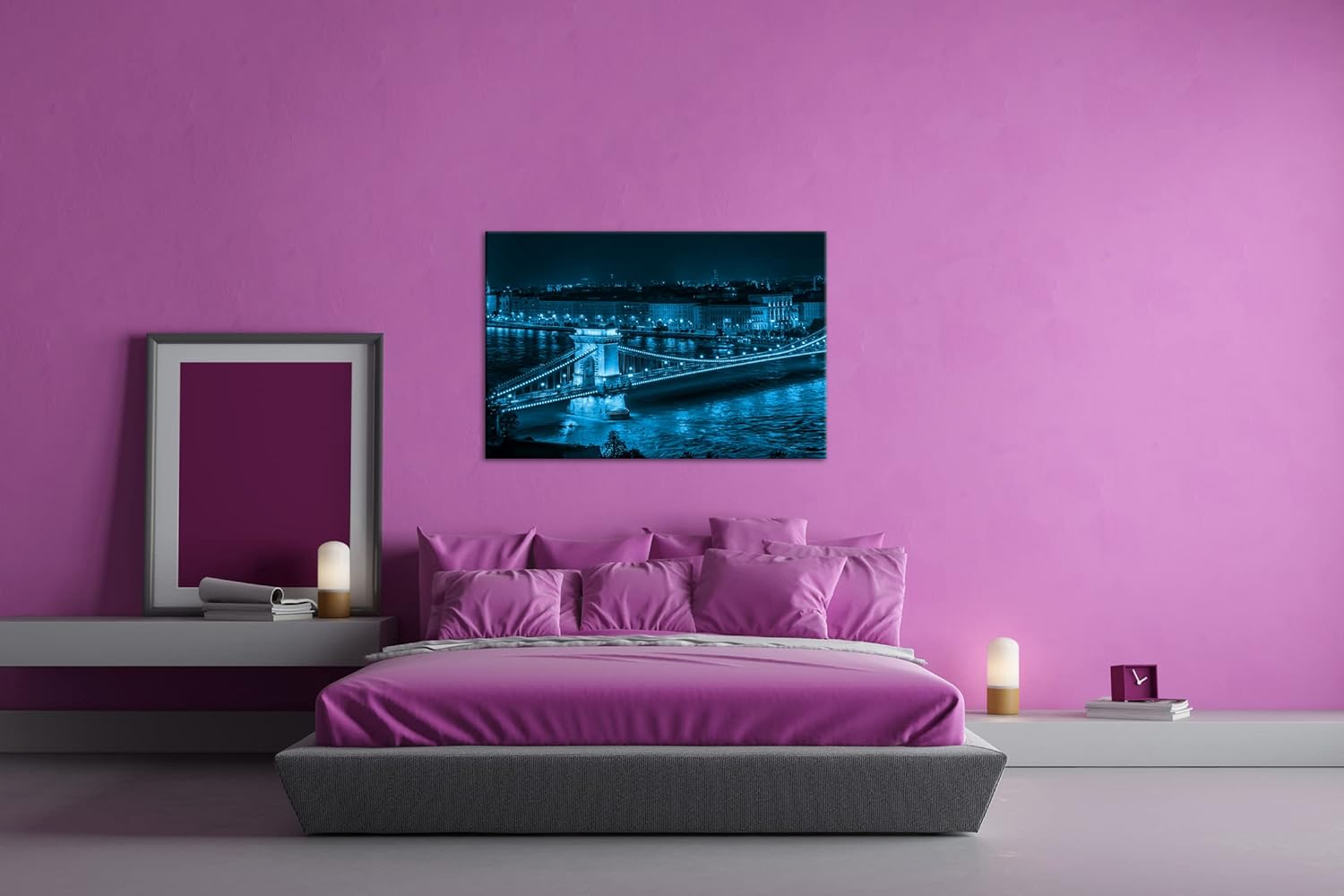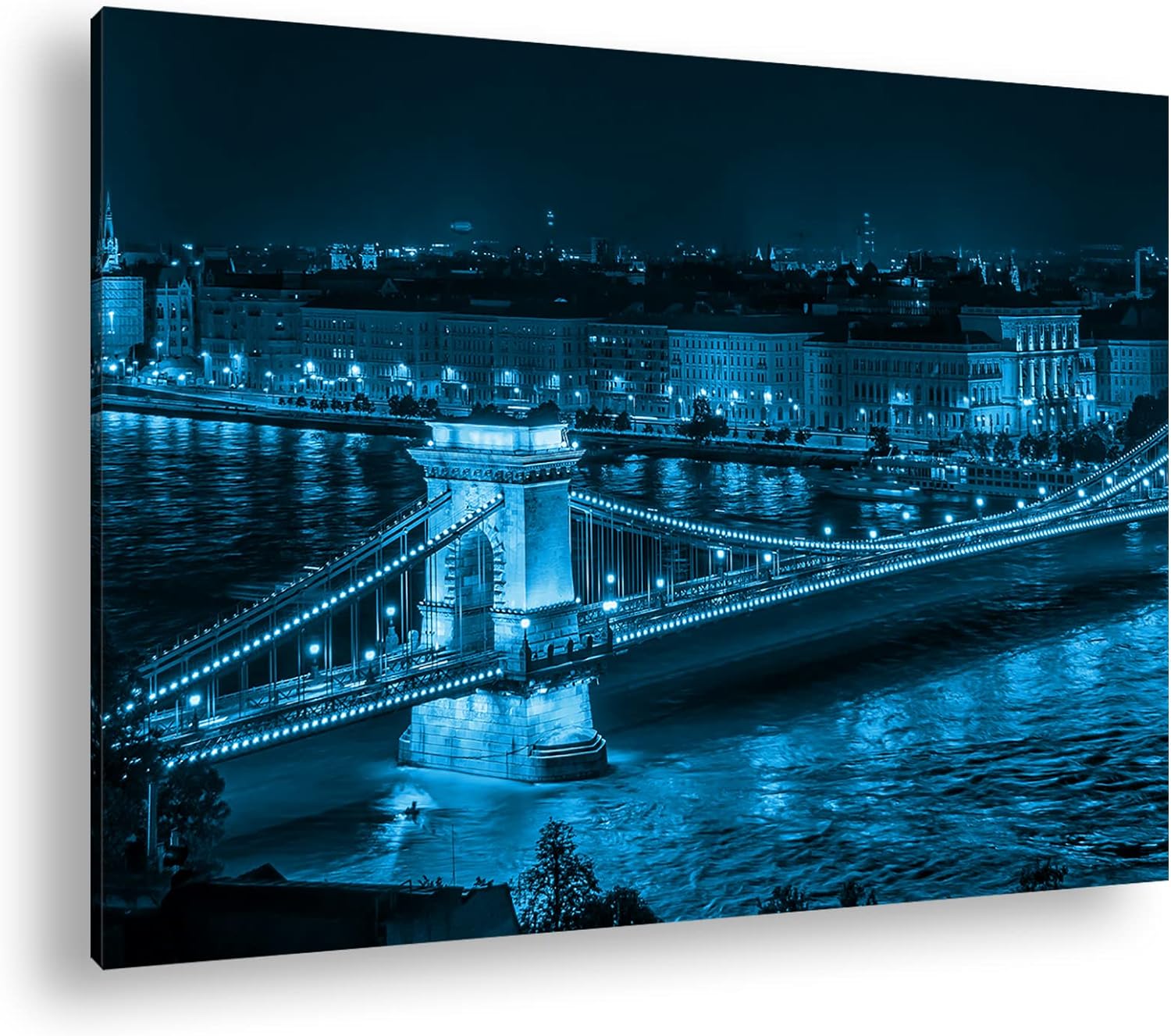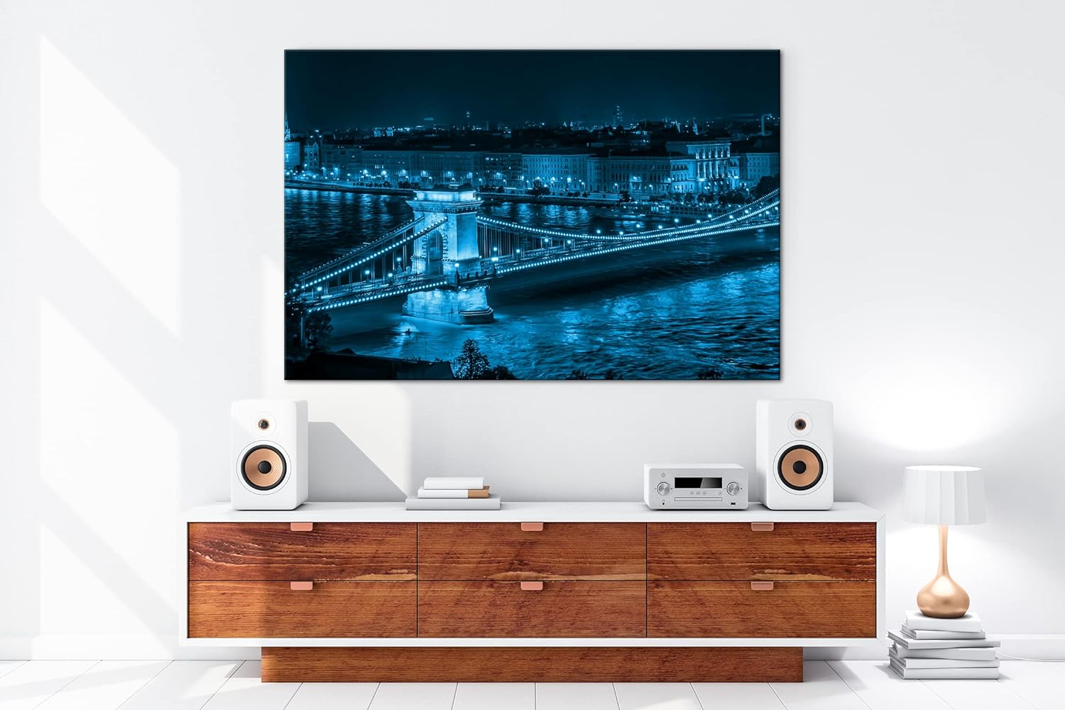 deyoli Kettenbrücke im schönen Budapest Format 80x60 Effekt: Monocrome Blau als Leinwandbild, Motiv