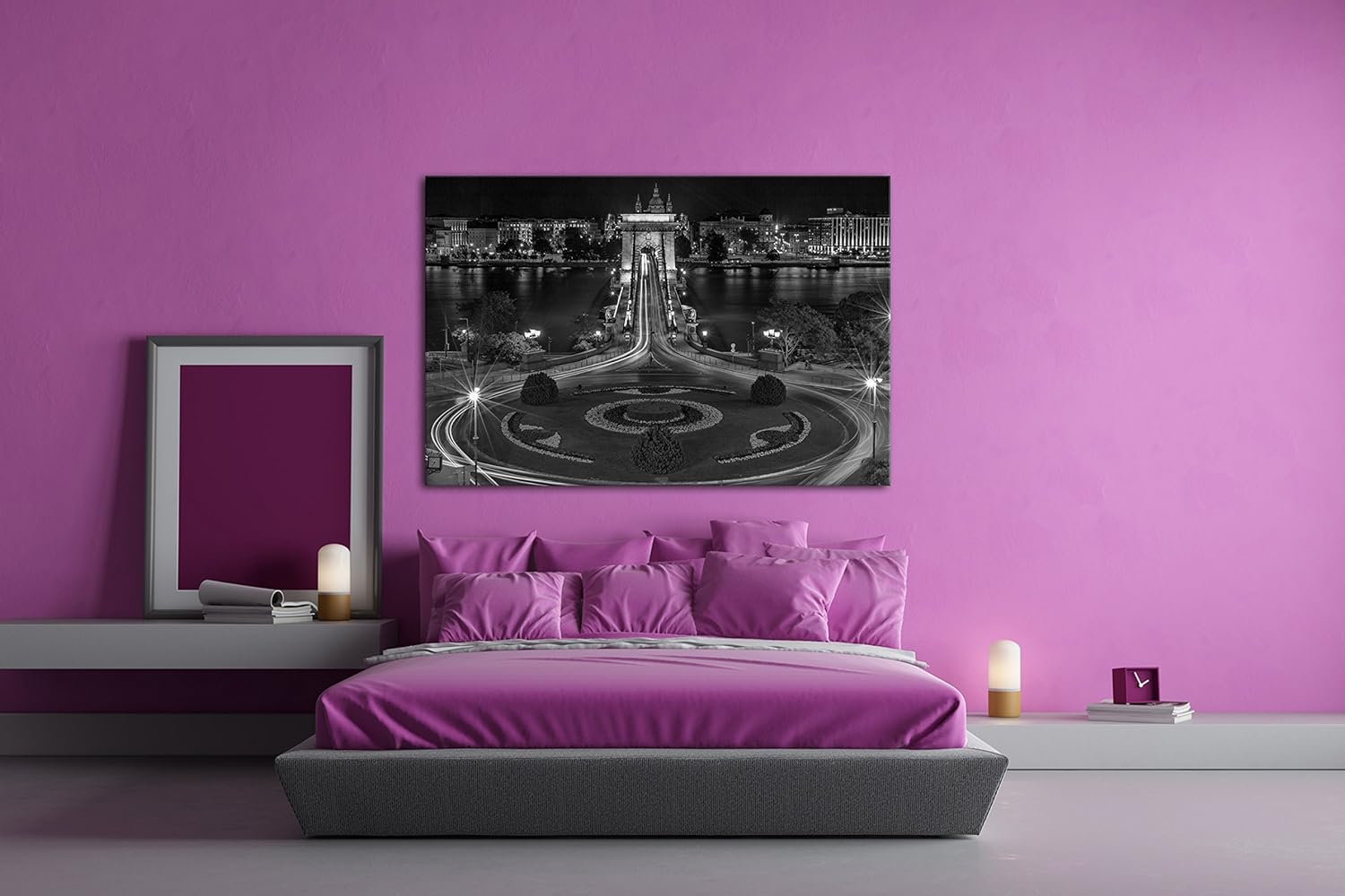deyoli Kettenbrücke in Budapest bei Nacht Effekt: Schwarz/Weiss Format: 80x60 als Leinwand, Motiv fe