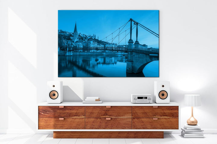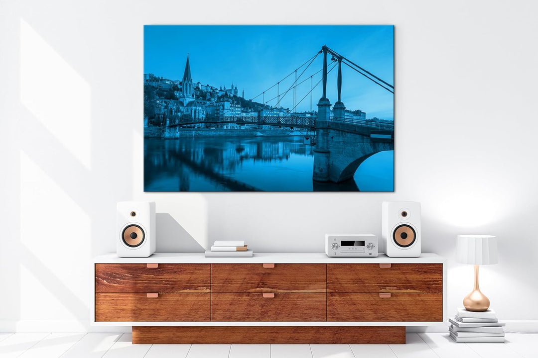 deyoli Kirche in Budapest Format: 80x60 cm Effekt: Monocrome Blau als Leinwandbild, Motiv fertig ger