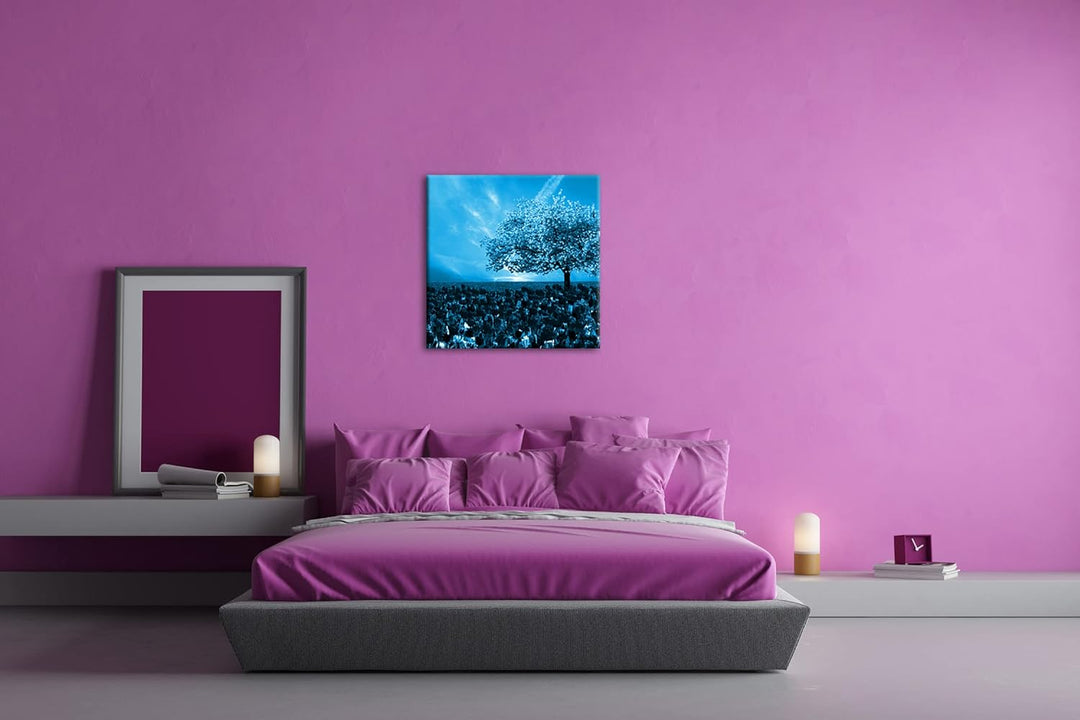 deyoli Kirschbaum im Tulpen Feld Format: 70x70 Effekt: Monocrome Blau als Leinwandbild, Motiv fertig