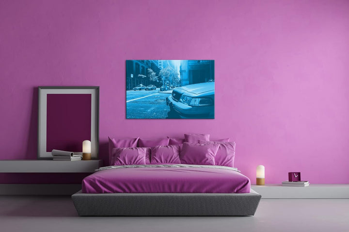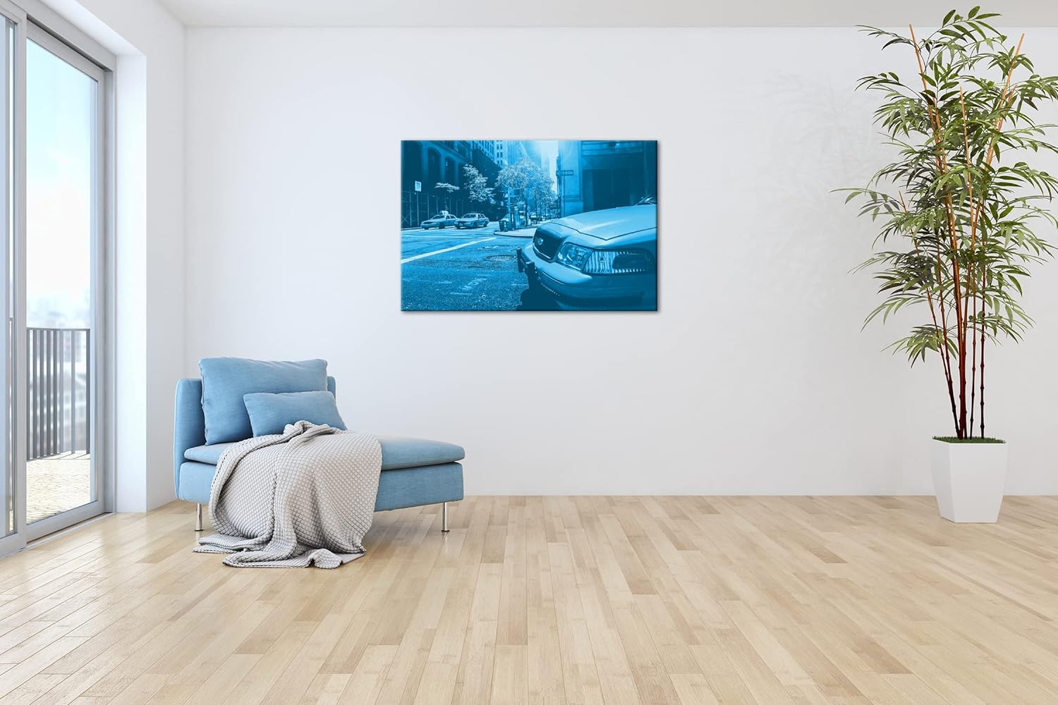 deyoli klassische Taxis in New York Format 80x60 Effekt: Monocrome Blau als Leinwandbild, Motiv fert