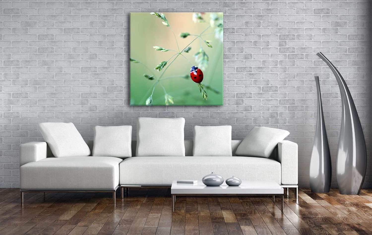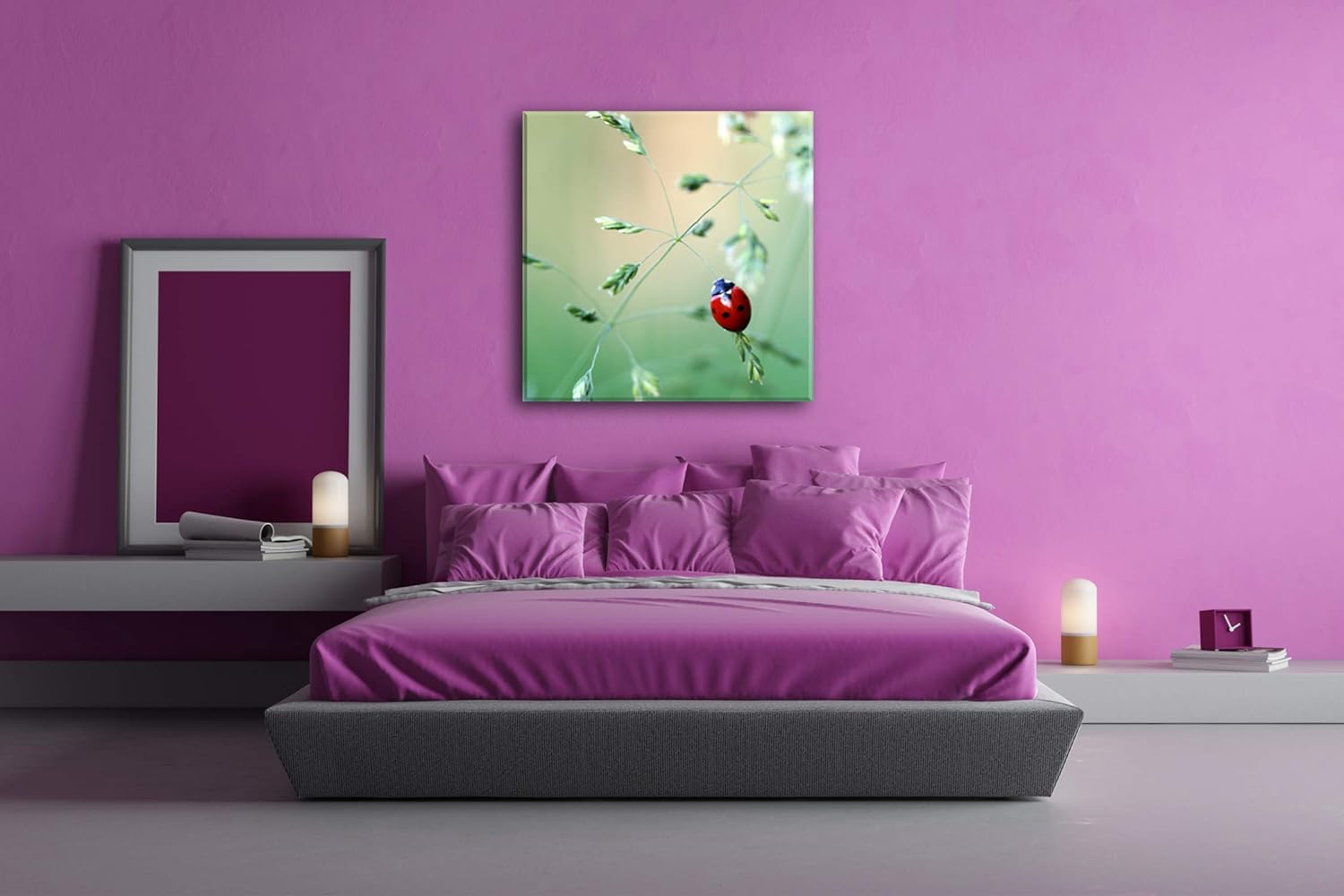 deyoli Kleiner roter Marienkäfer Format: 60x60 als Leinwandbild, Motiv fertig gerahmt auf Echtholzra