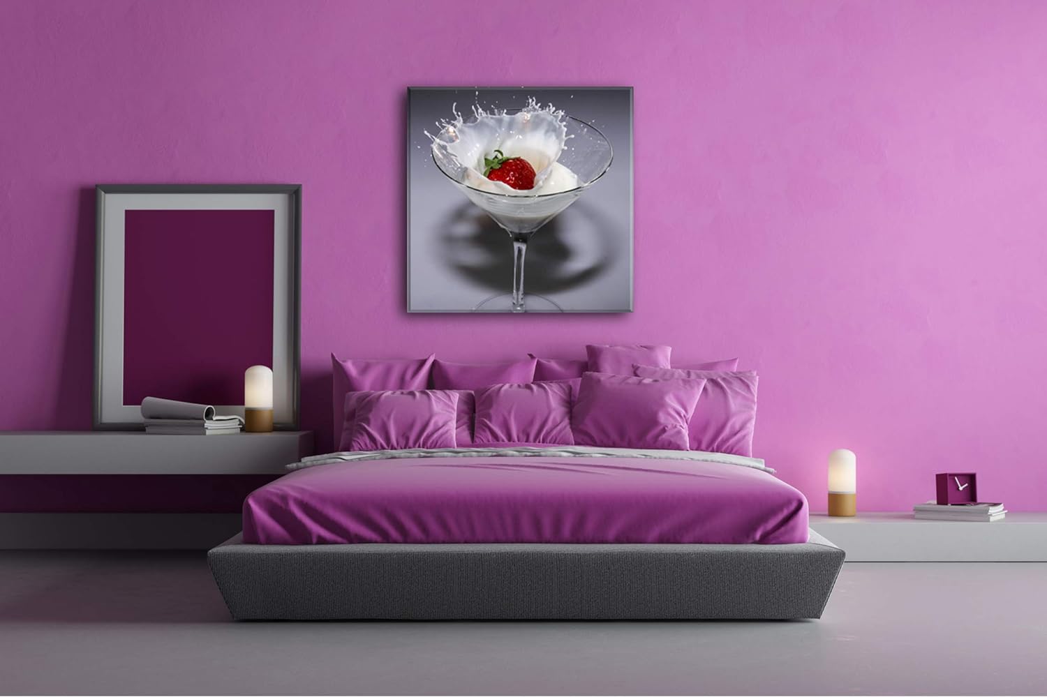 deyoli kleines Cocktailglas mit Erdbeere und Sahne im Format: 70x70 als Leinwandbild, Motiv fertig g