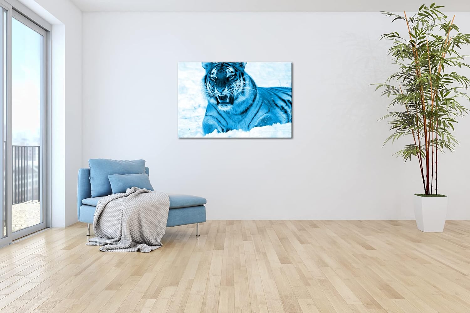 deyoli knurrender Tiger im Schnee Format 80x60 Effekt: Monocrome Blau als Leinwandbild, Motiv fertig