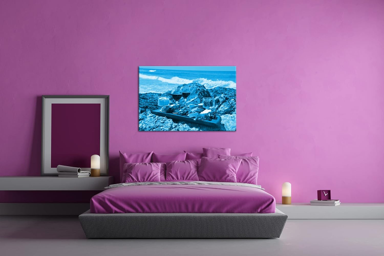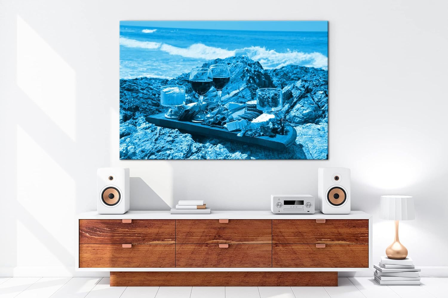 deyoli Käseplatte am Strand Format: 80x60 Effekt: Monocrome Blau als Leinwand, Motiv fertig gerahmt