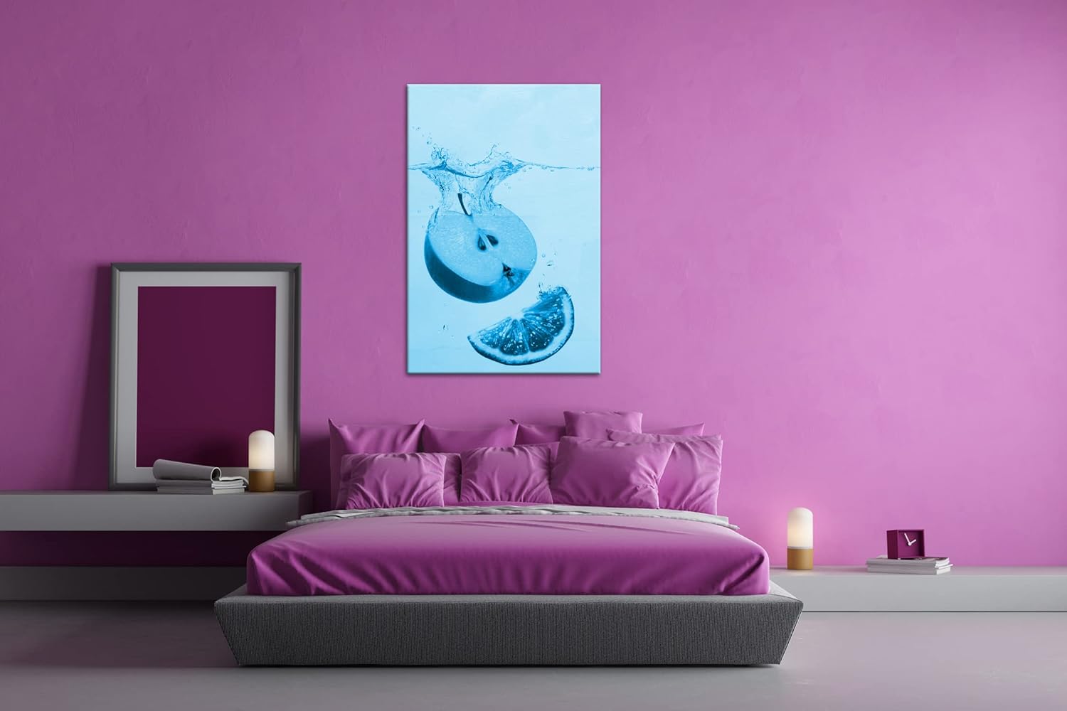 deyoli köstlicher Apfel mit Zitronenscheibe Format 80x60 Effekt: Monocrome Blau als Leinwandbild, Mo