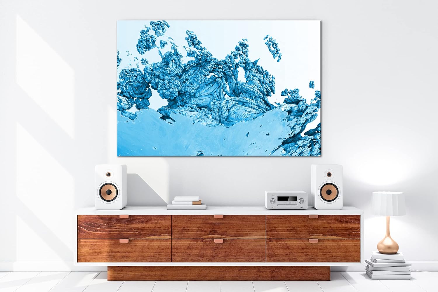 deyoli kunterbuntes Fraktal Format 80x60 Effekt: Monocrome Blau als Leinwandbild, Motiv fertig gerah