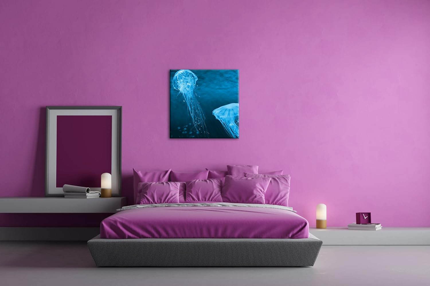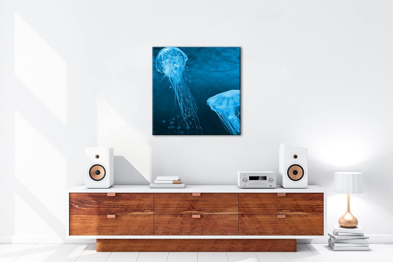 deyoli leuchtende Quallen Format: 70x70 Effekt: Monocrome Blau als Leinwandbild, Motiv fertig gerahm