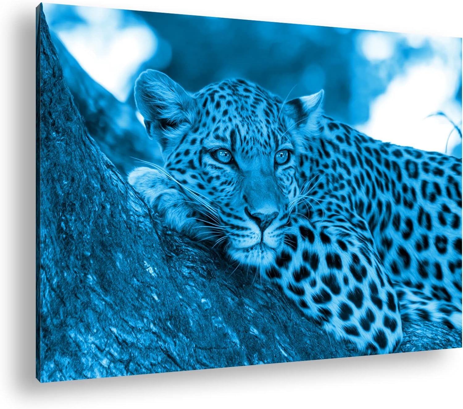 deyoli liegender Leopard Format 80x60 Effekt: Monocrome Blau als Leinwandbild, Motiv fertig gerahmt