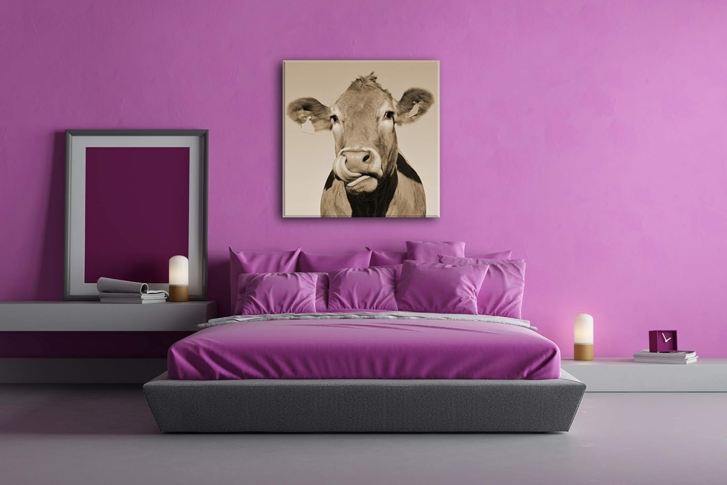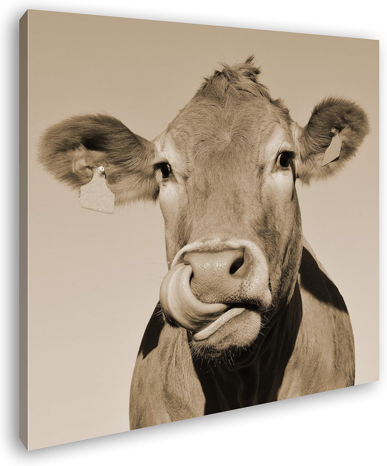 deyoli lustige Kuh Format: 70x70 Effekt: Sepia als Leinwandbild, Motiv fertig gerahmt auf Echtholzra