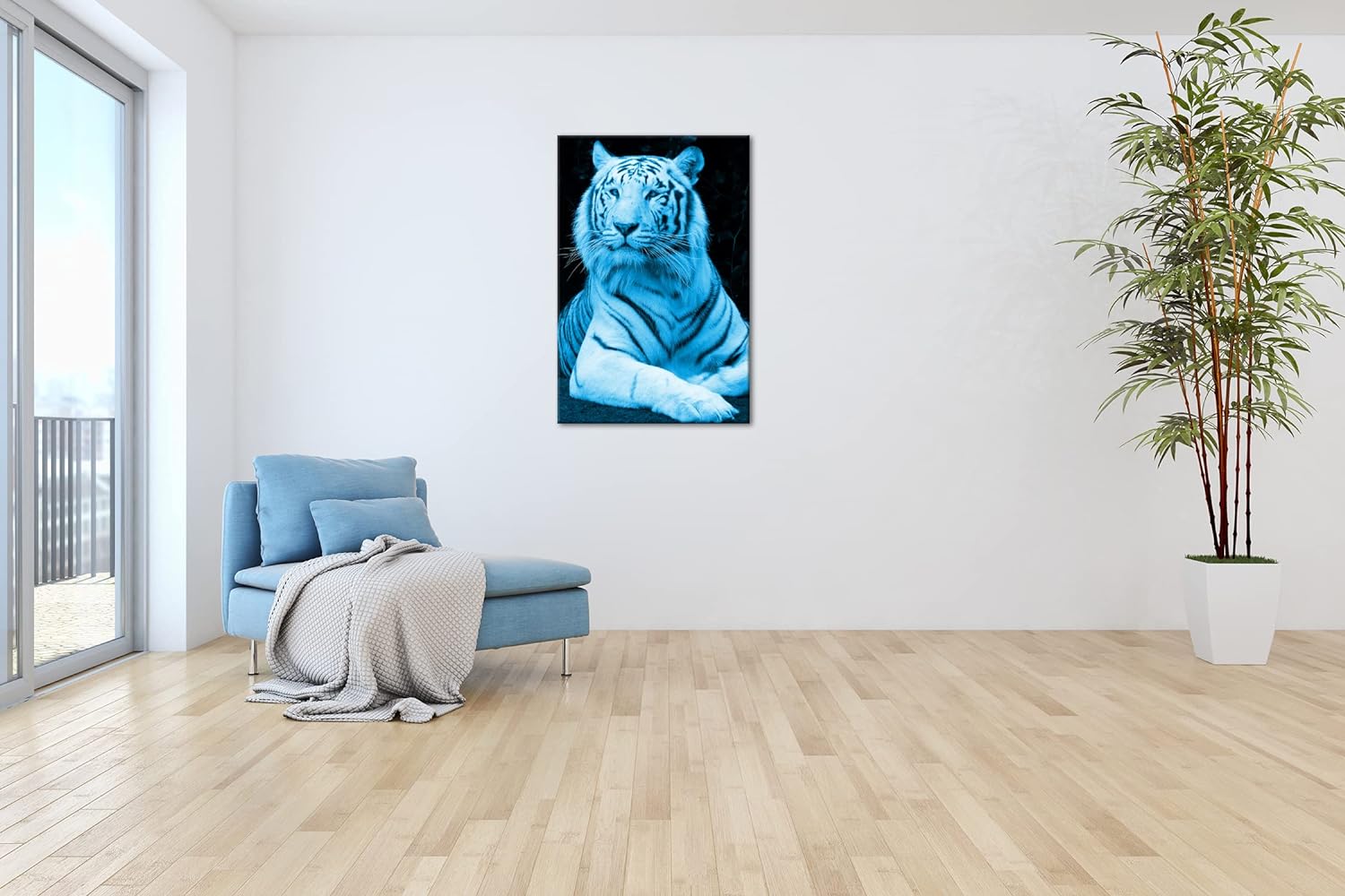 deyoli majestätischer Tiger Format 80x60 Effekt: Monocrome Blau als Leinwandbild, Motiv fertig gerah