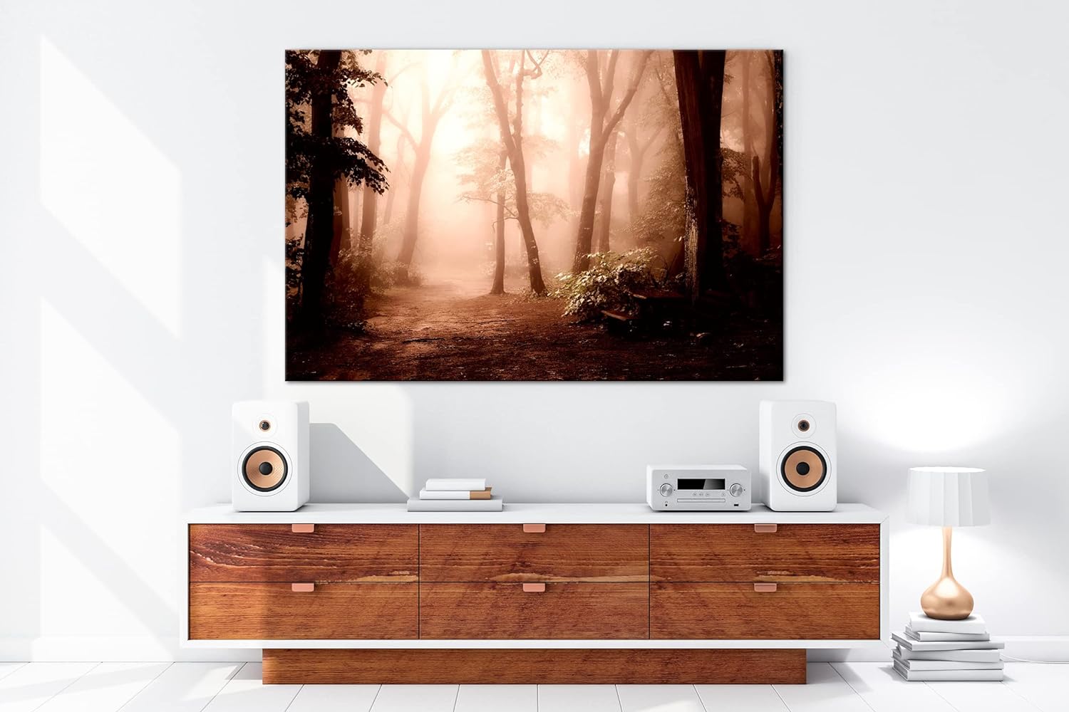 deyoli neblischer Waldweg Format: 80x60 als Leinwand, Motiv fertig gerahmt auf Echtholzrahmen, Hochw
