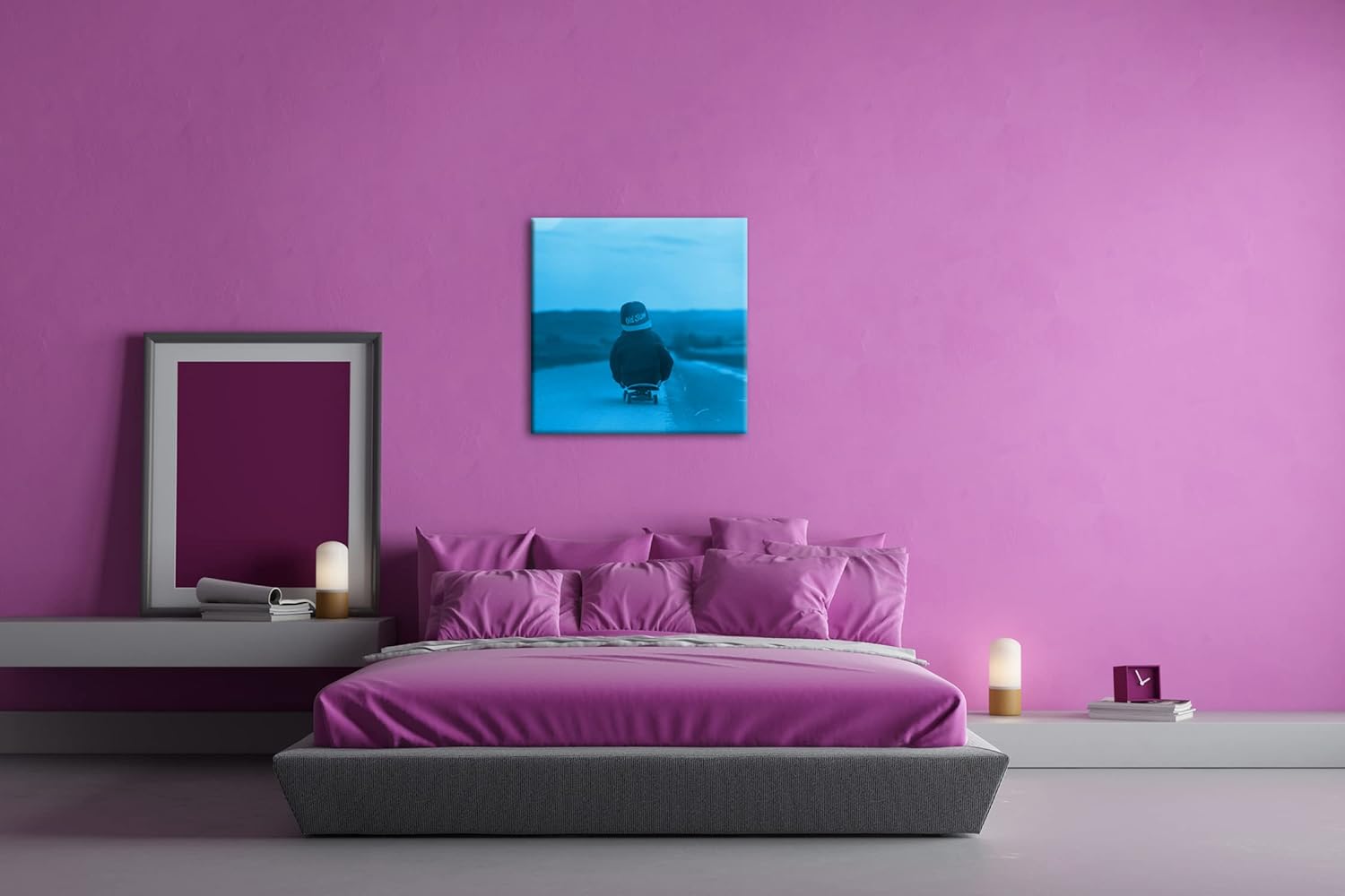 deyoli niedlicher Skater bei Sonnenuntergang Format: 60x60 Effekt: Monocrome Blau als Leinwandbild,