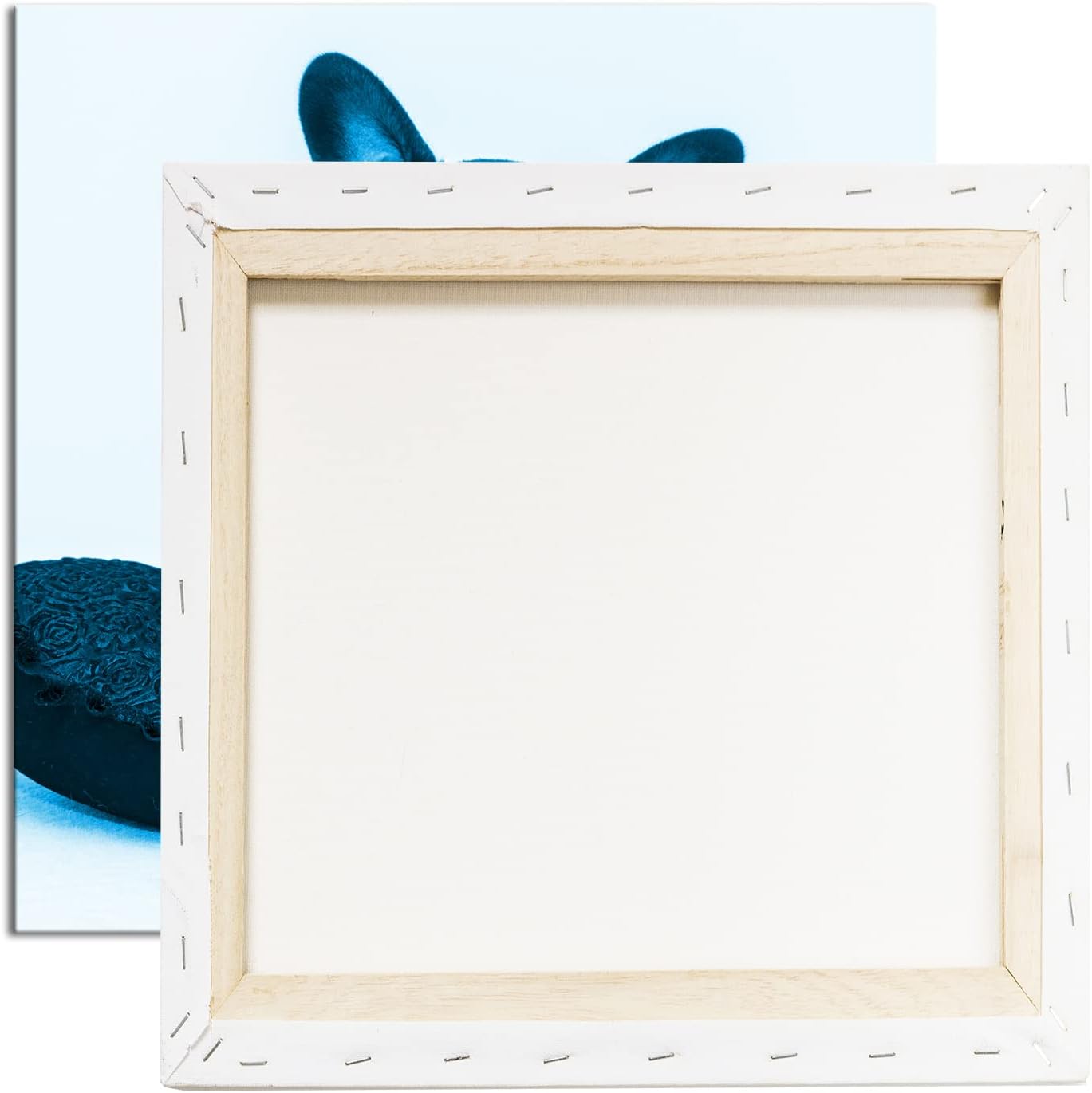 deyoli putzige Bulldogge mit einem Rotem Kissen Format: 60x60 Effekt: Monocrome Blau als Leinwandbil