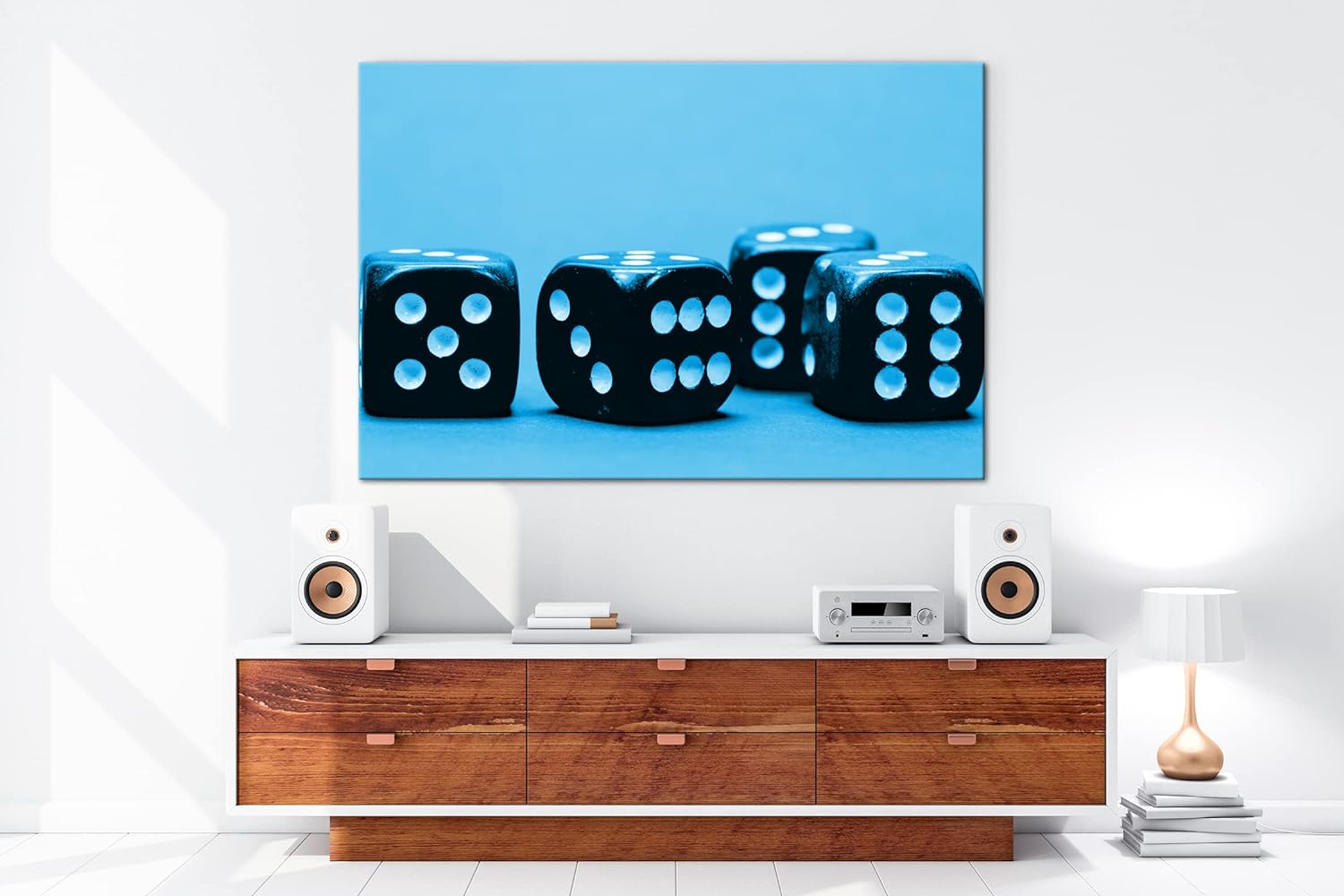deyoli quadratische pinke Spielwürfel Format 80x60 Effekt: Monocrome Blau als Leinwandbild, Motiv fe