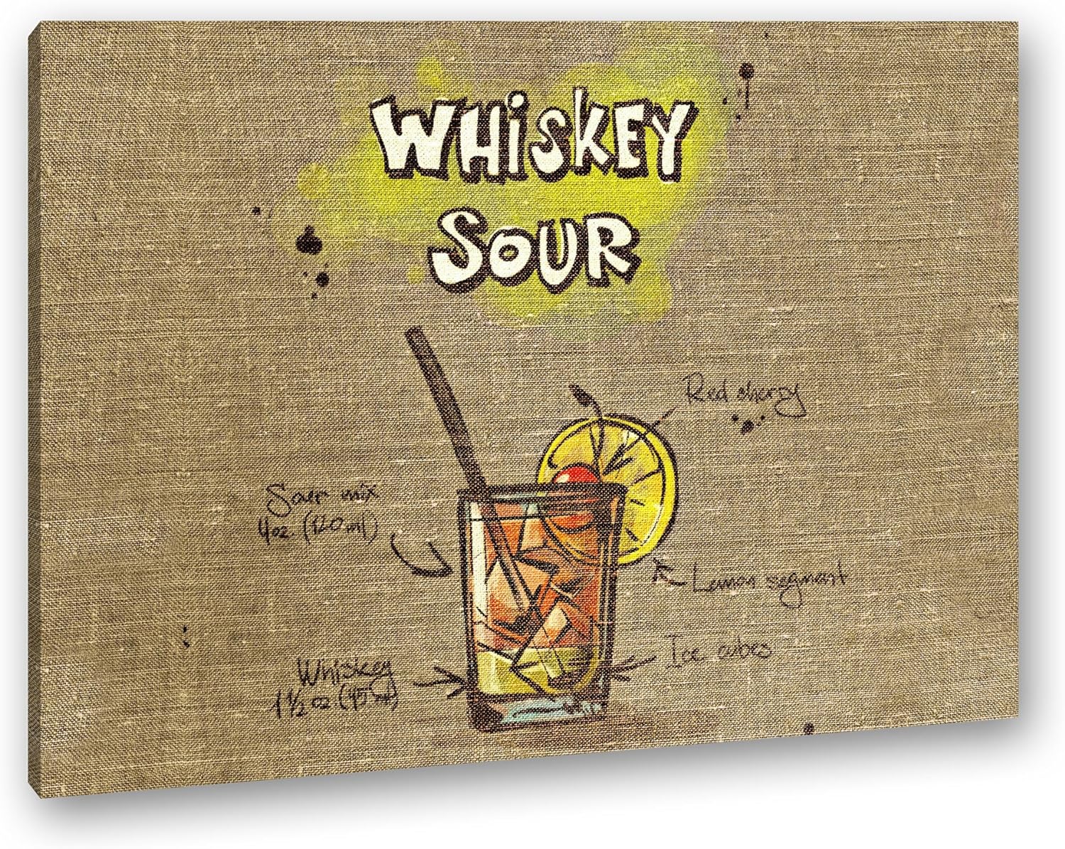 deyoli Rezept für einen Whiskey Sour Format: 80x60 als Leinwandbild, Motiv fertig gerahmt auf Echtho