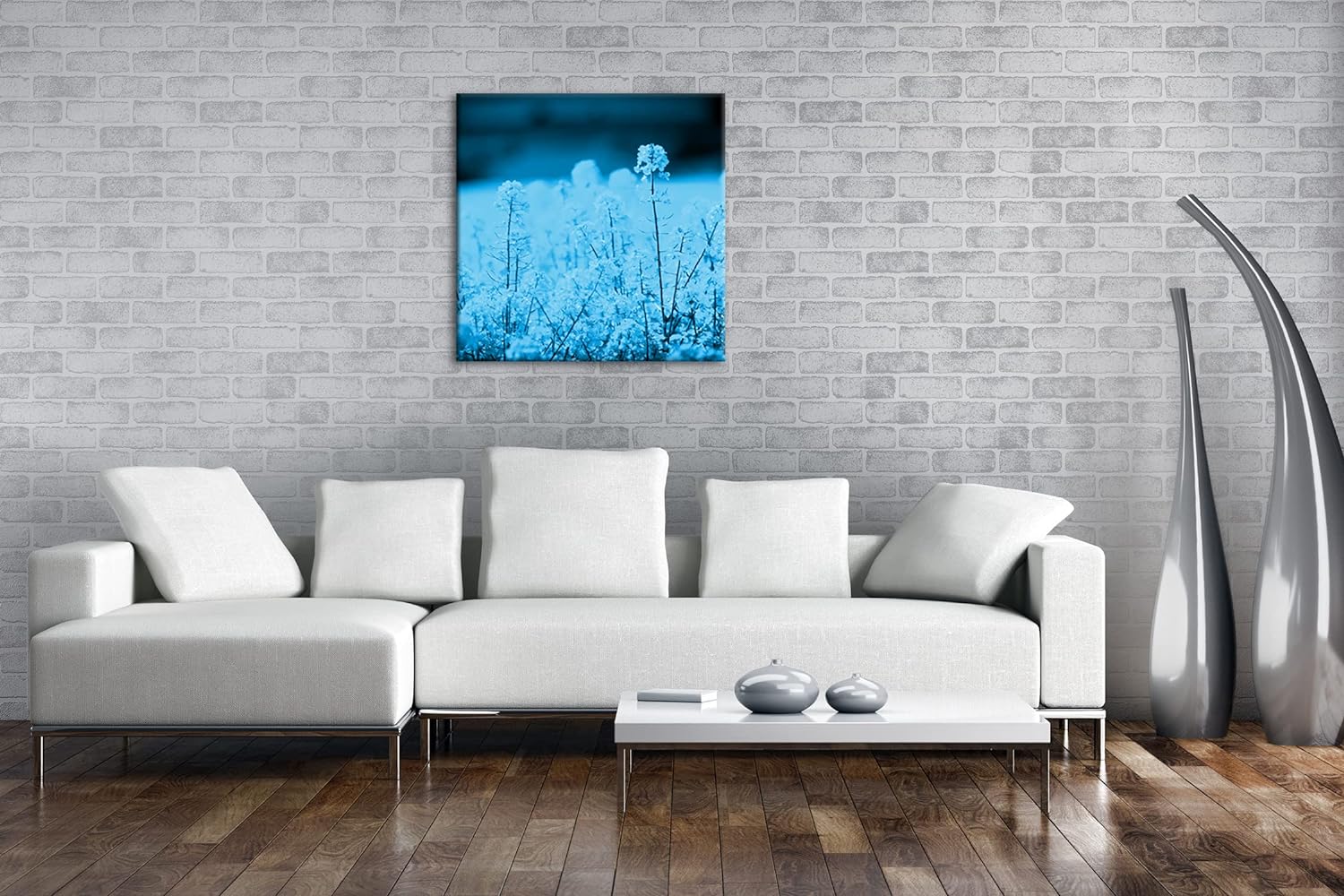 deyoli riesiges Rapsfeld Format: 70x70 Effekt: Monocrome Blau als Leinwandbild, Motiv fertig gerahmt