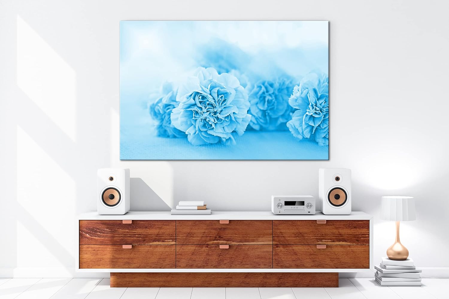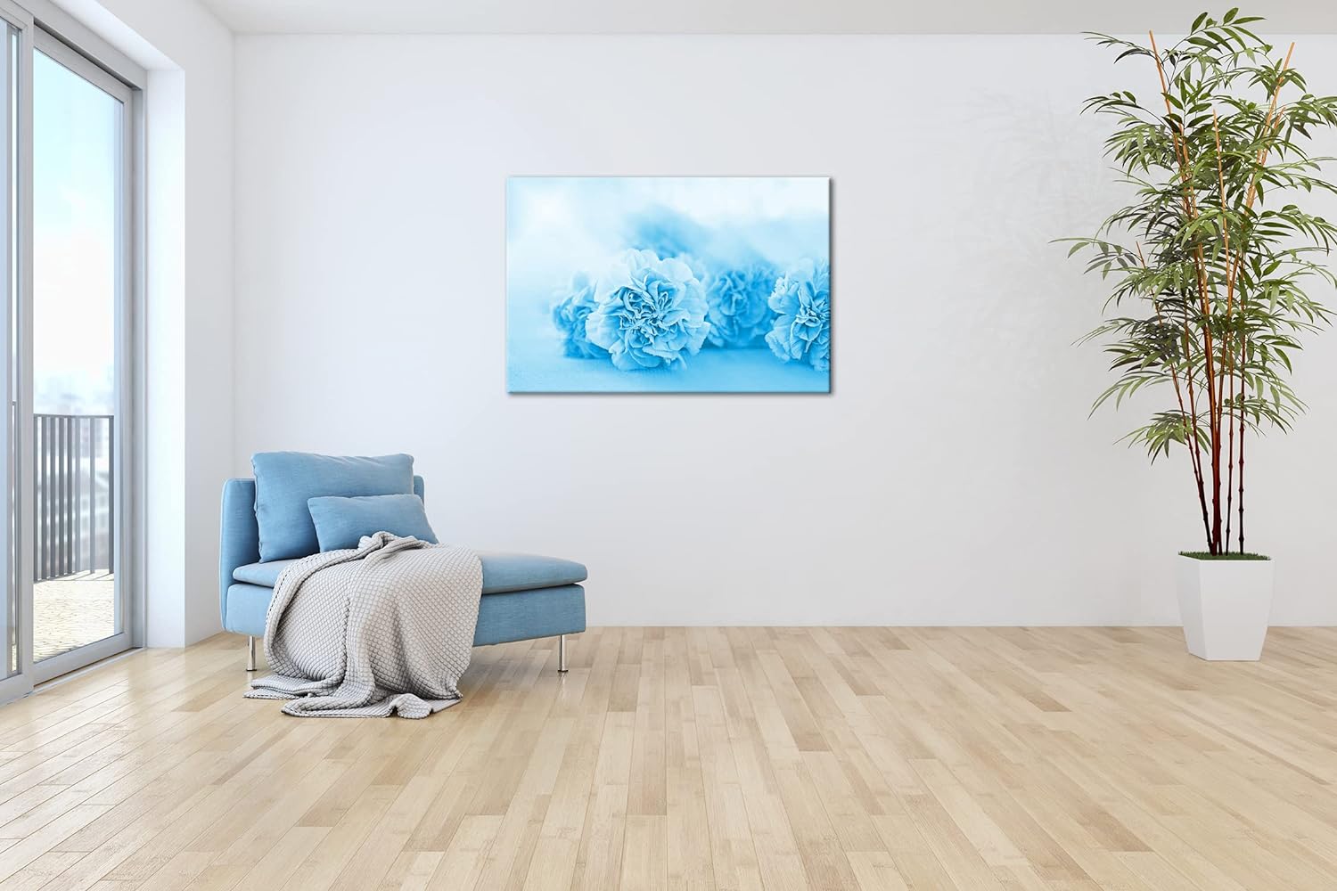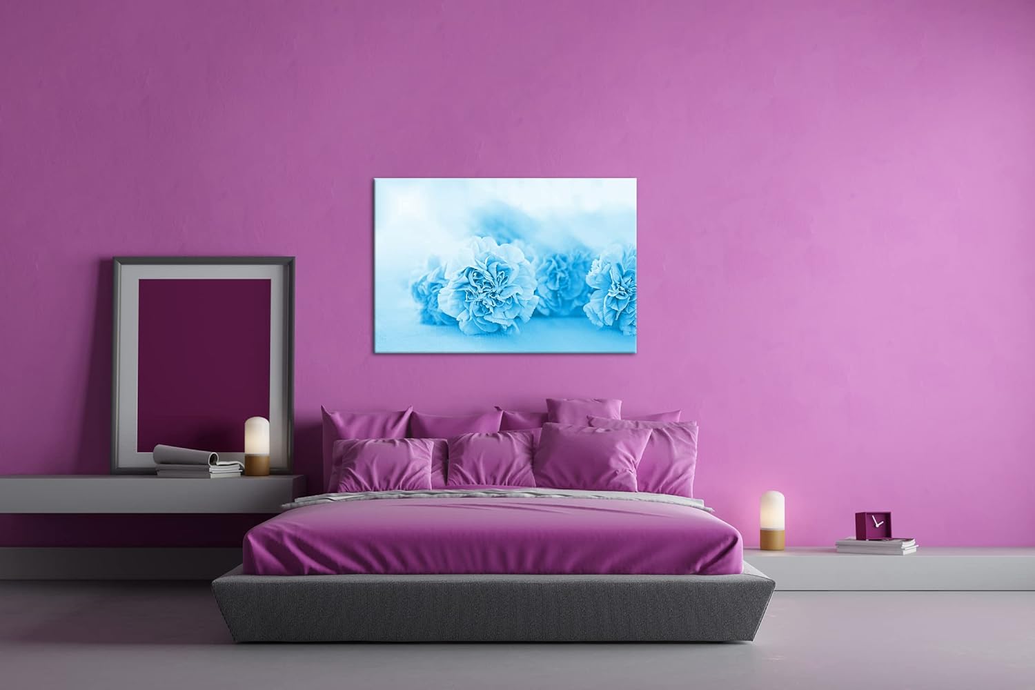 deyoli rosafarbene Nelken Format 80x60 Effekt: Monocrome Blau als Leinwandbild, Motiv fertig gerahmt