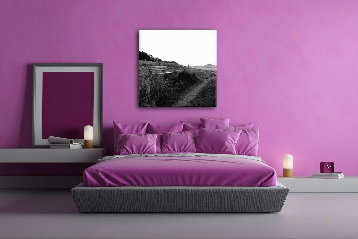 deyoli ruhige Bank am Feldweg Format: 60x60 Effekt: Schwarz&Weiss als Leinwandbild, Motiv fertig ger