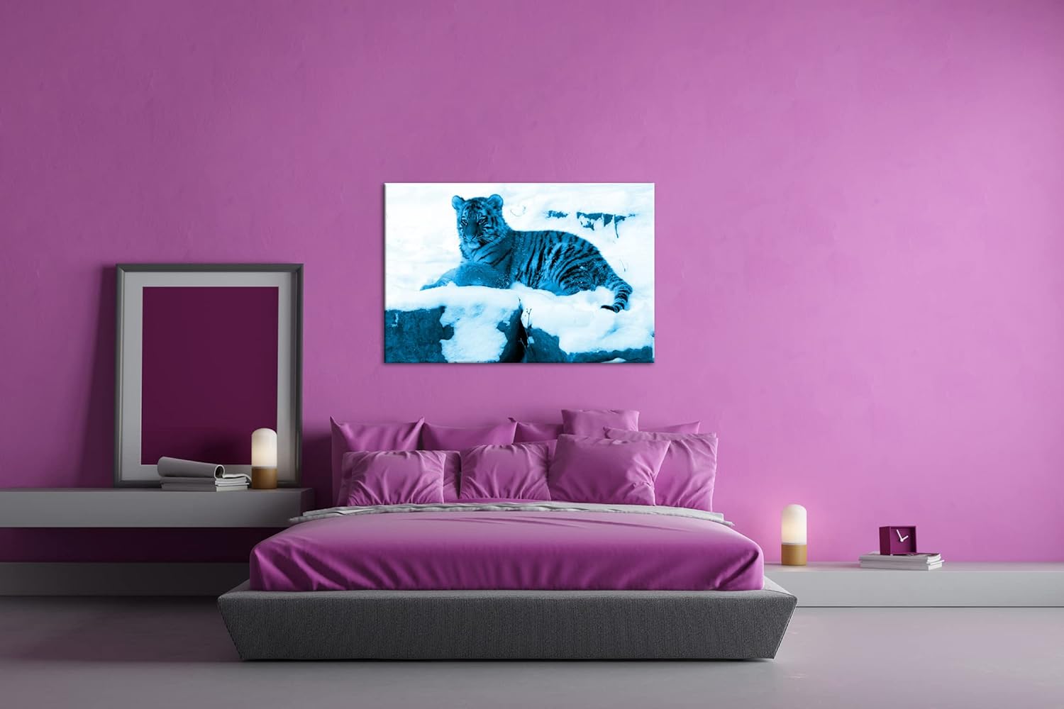 deyoli ruhig liegender Tiger im Schnee Format 80x60 Effekt: Monocrome Blau als Leinwandbild, Motiv f