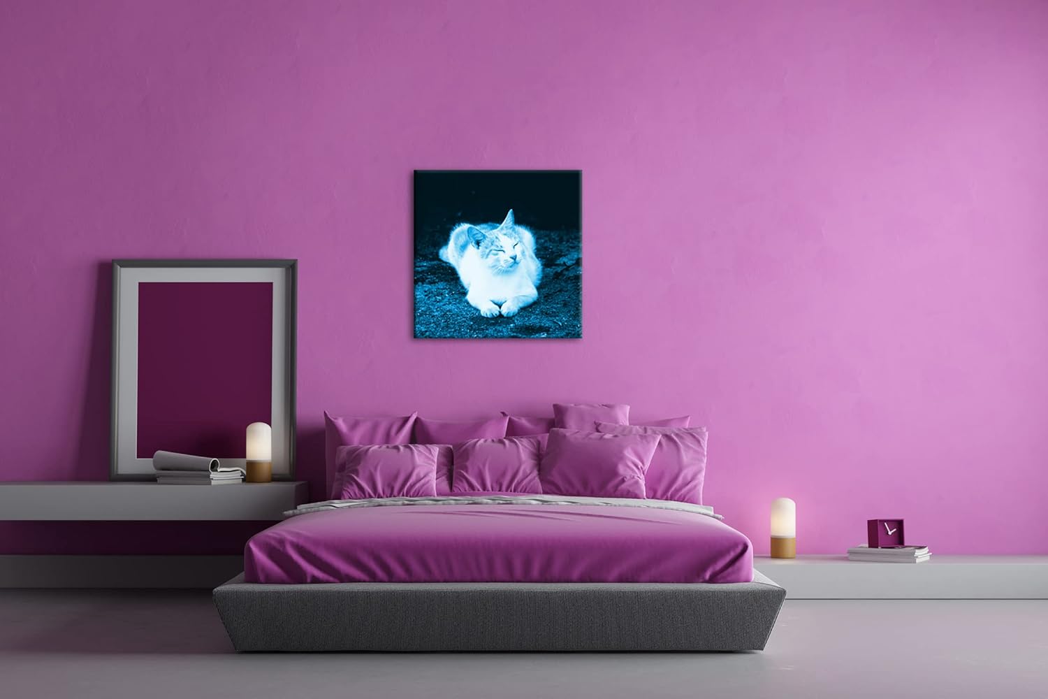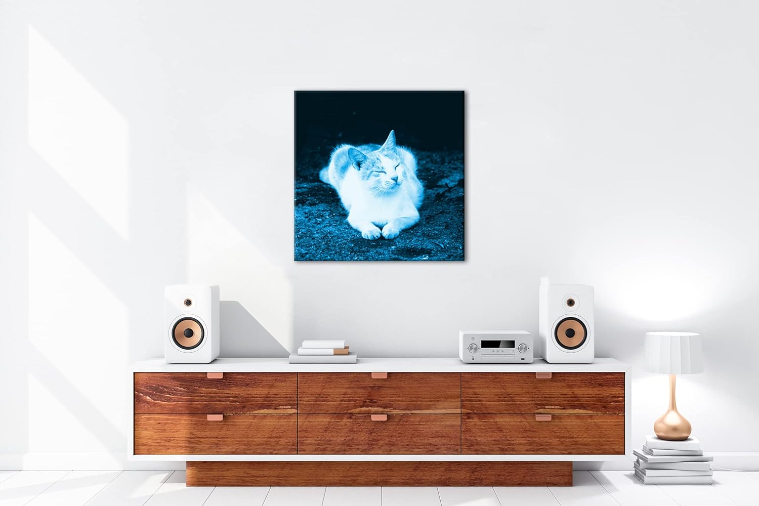 deyoli schläfrige Katze Format: 60x60 Effekt: Monocrome Blau als Leinwandbild, Motiv fertig gerahmt