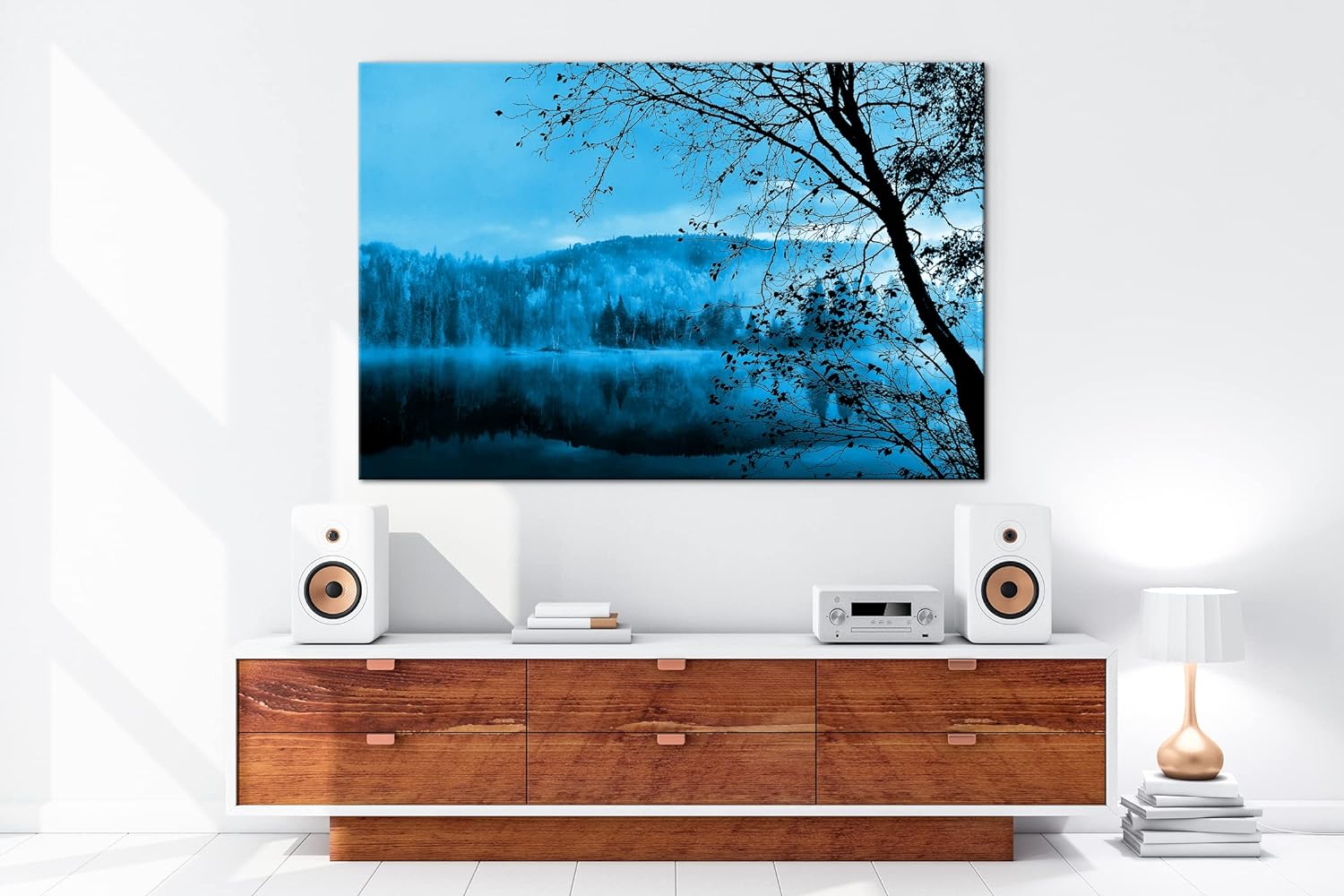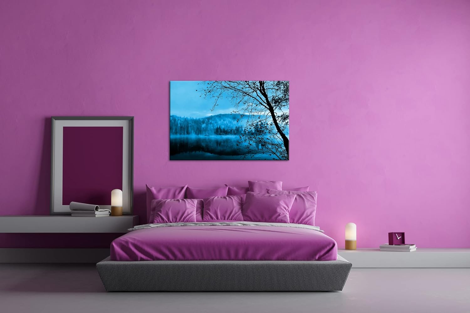 deyoli schöne Herbstlandschaft am See Format 80x60 Effekt: Monocrome Blau als Leinwandbild, Motiv fe