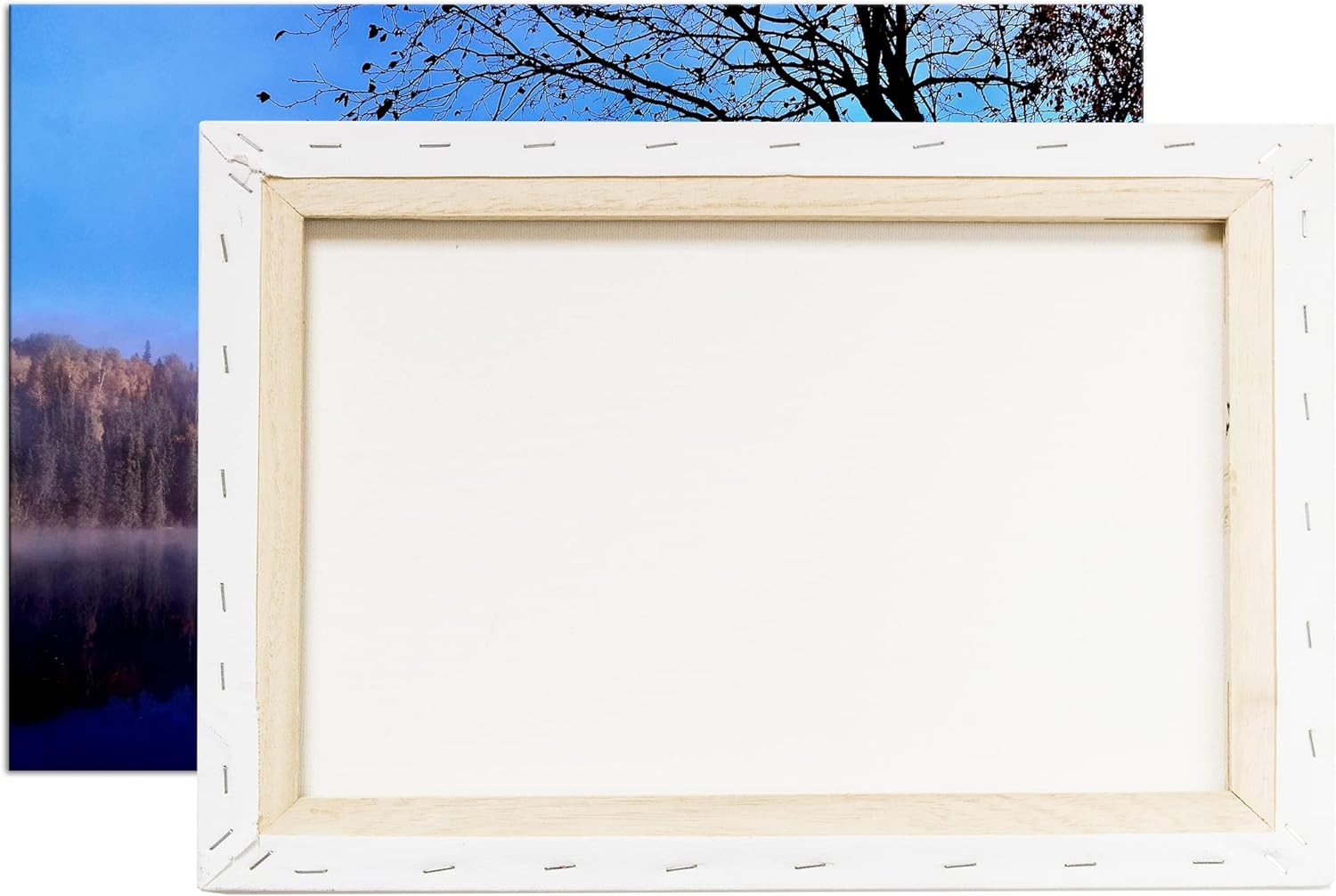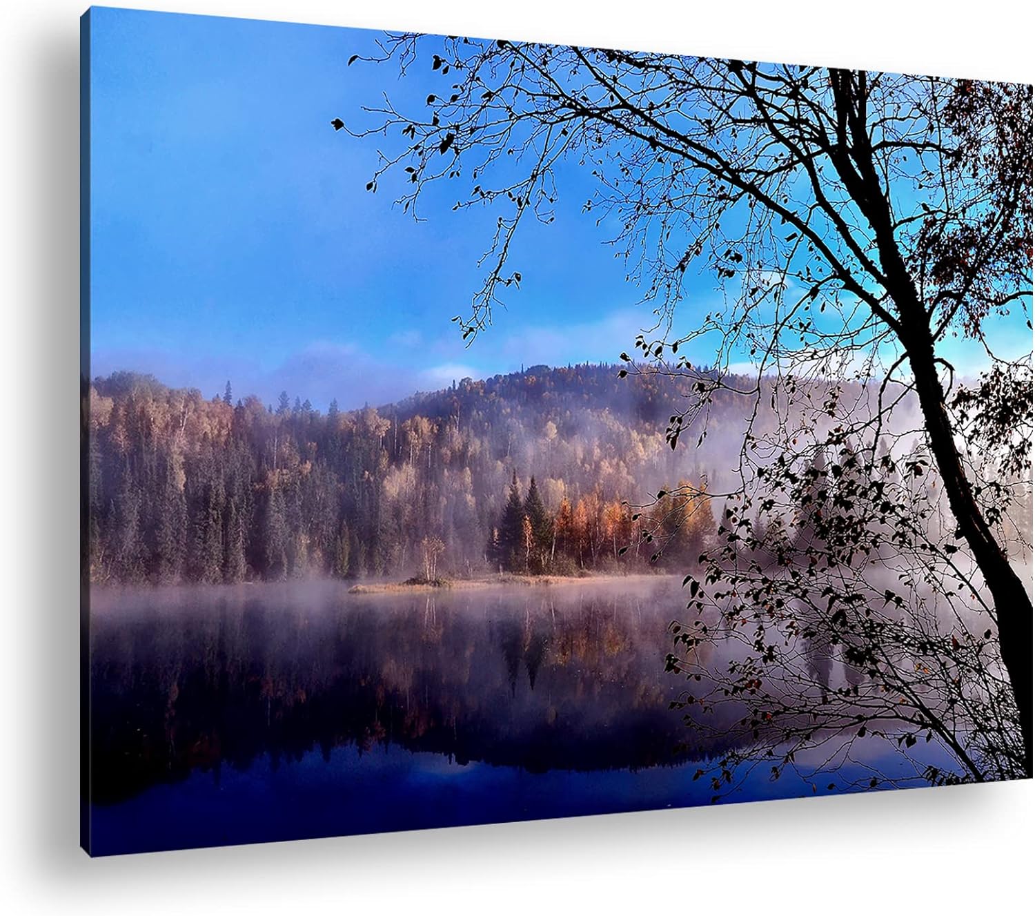 deyoli schöne Herbstlandschaft am See im Format: 80x60 als Leinwandbild, Motiv fertig gerahmt auf Ec